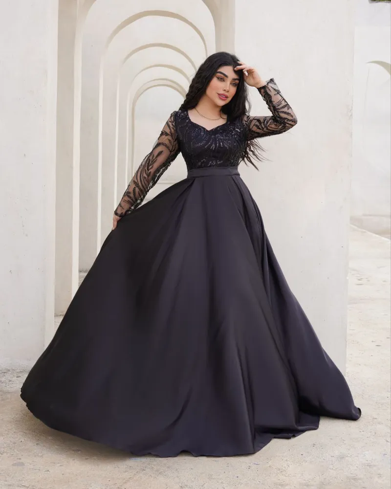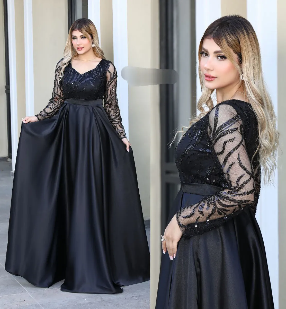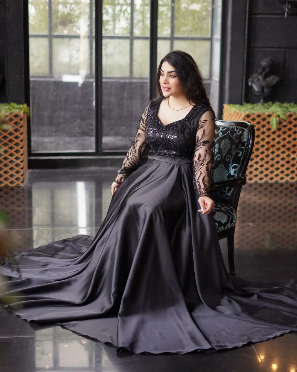لباس مجلسی مشکی پولکی سایز بزرگ مدل دنیز