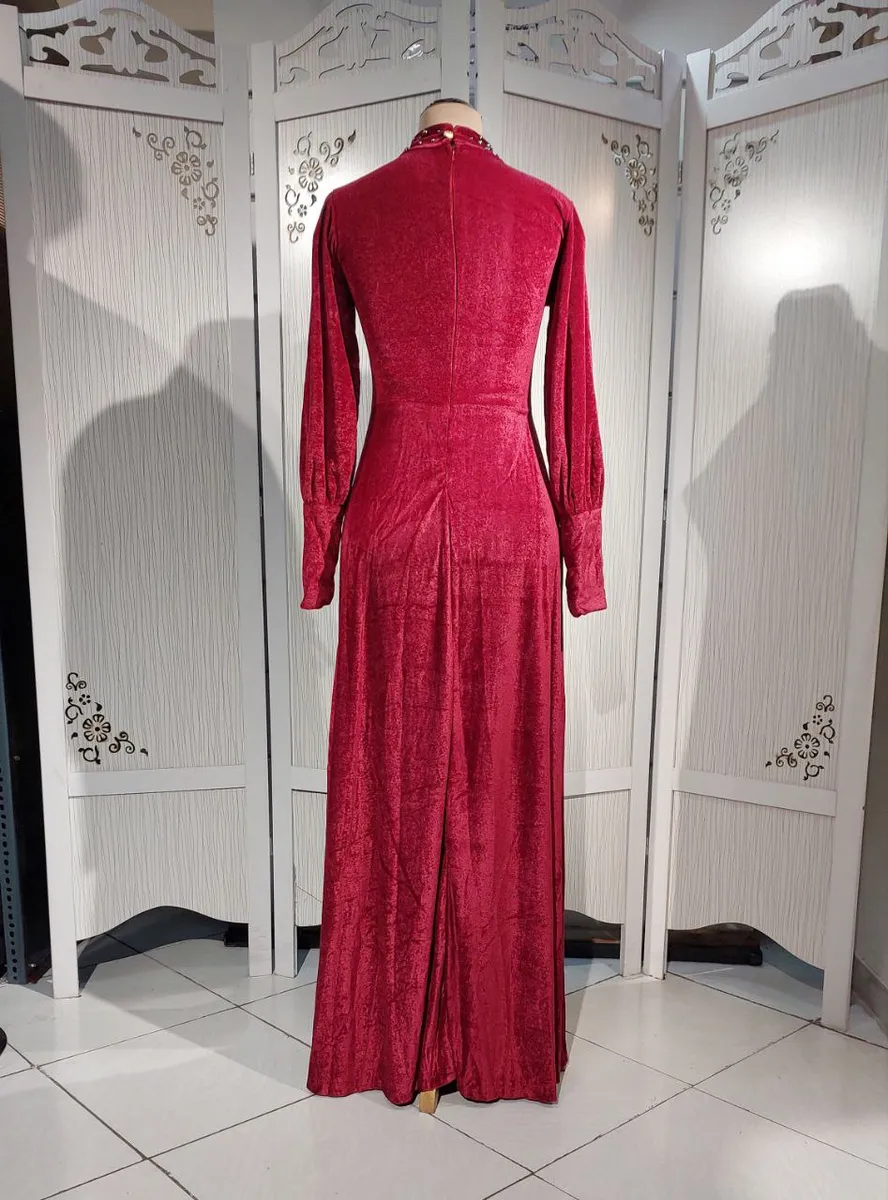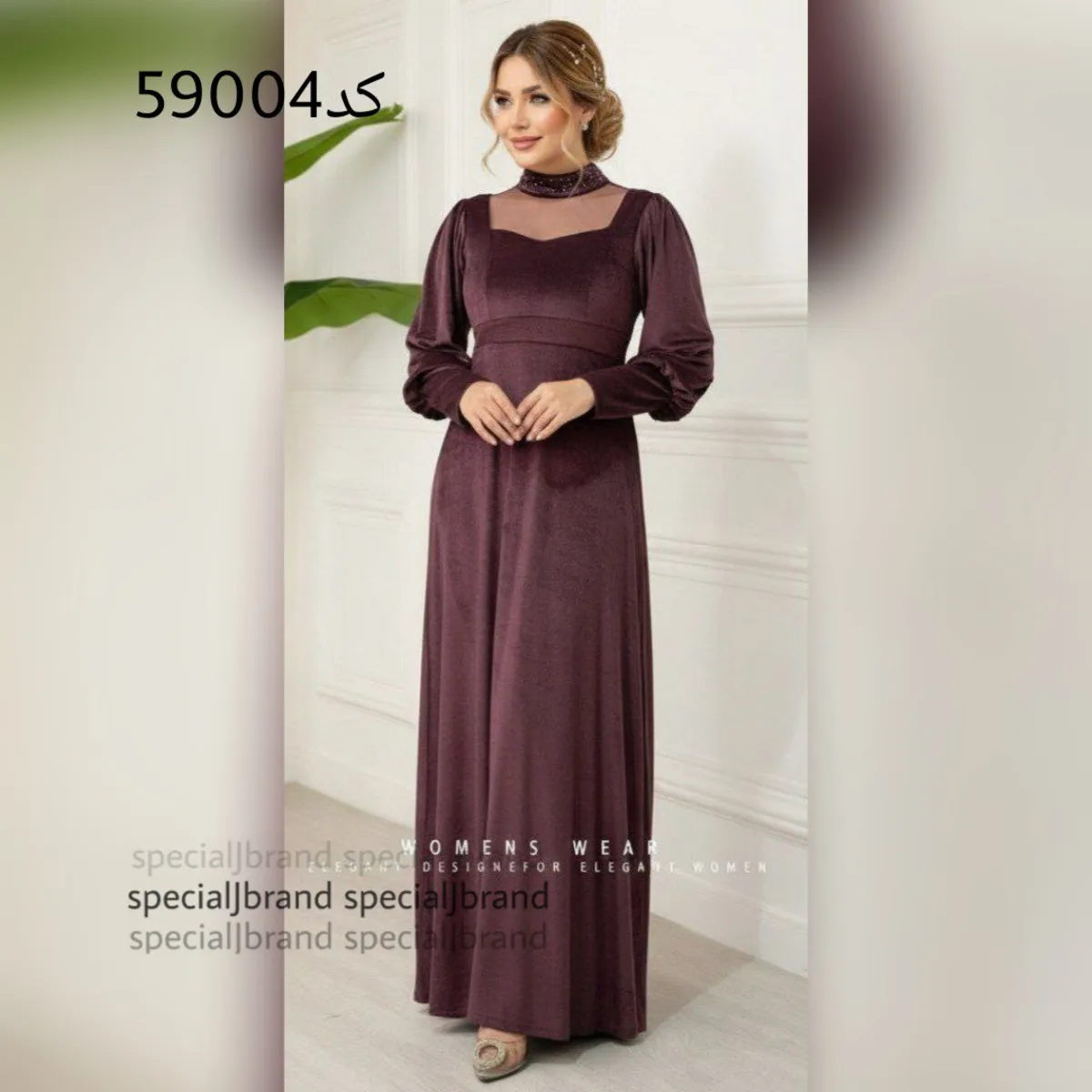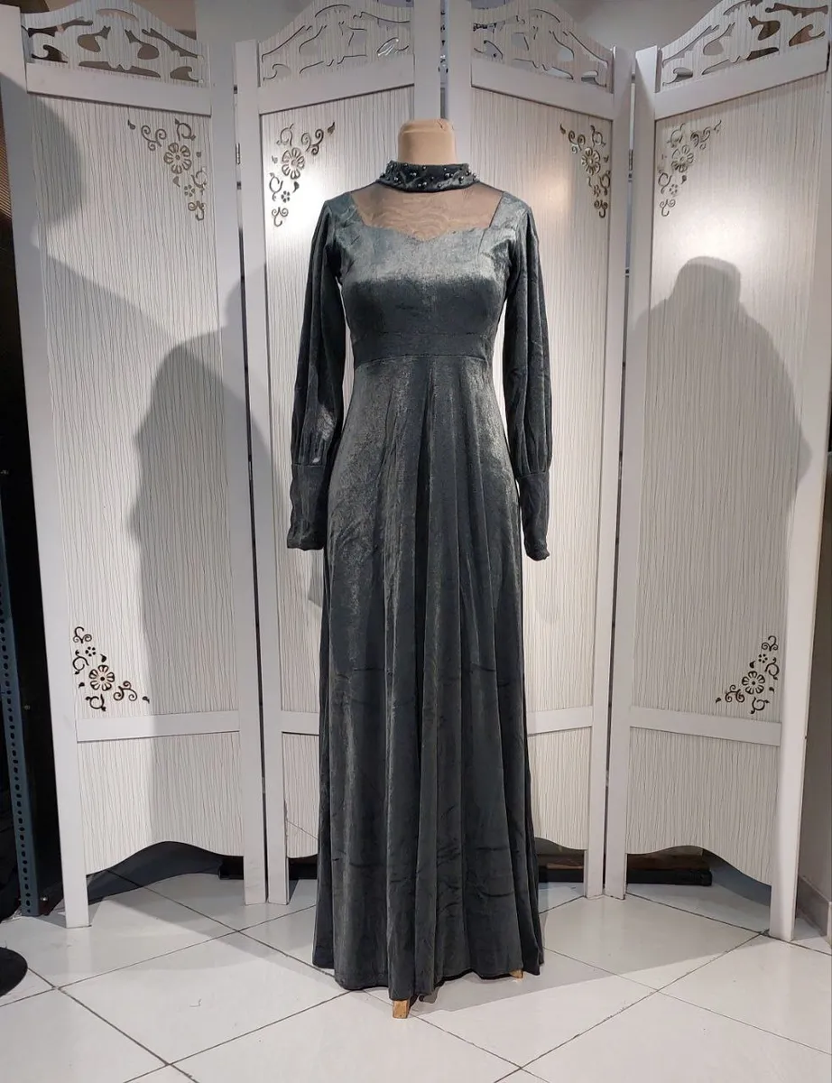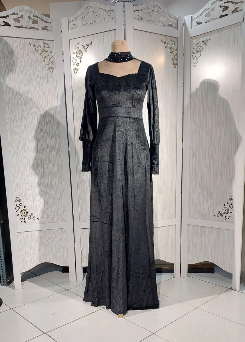 * **بدنه مخملی:** قسمت اصلی لباس از **مخمل درجه یک** ساخته شده که با سنگینی و وقار خود، جلوهای لوکس و باشکوه به استایل شما میبخشد.