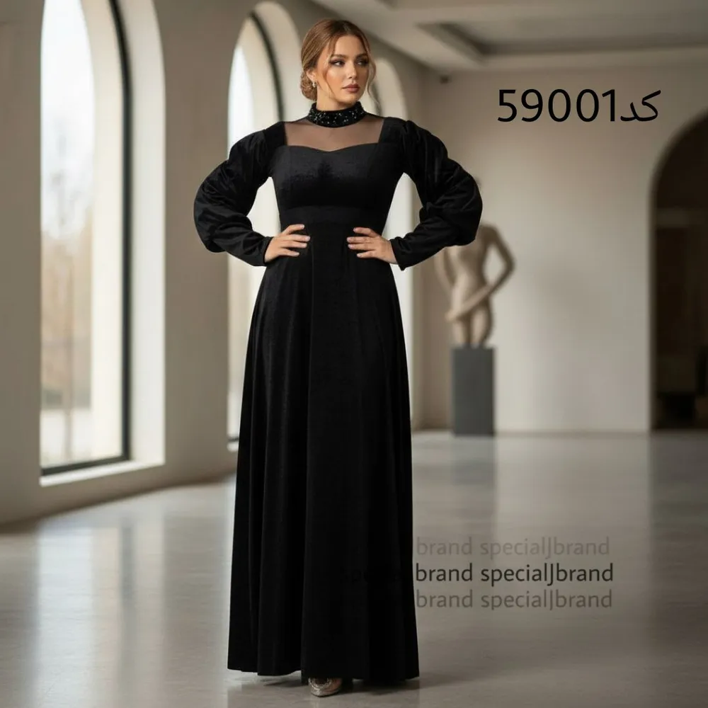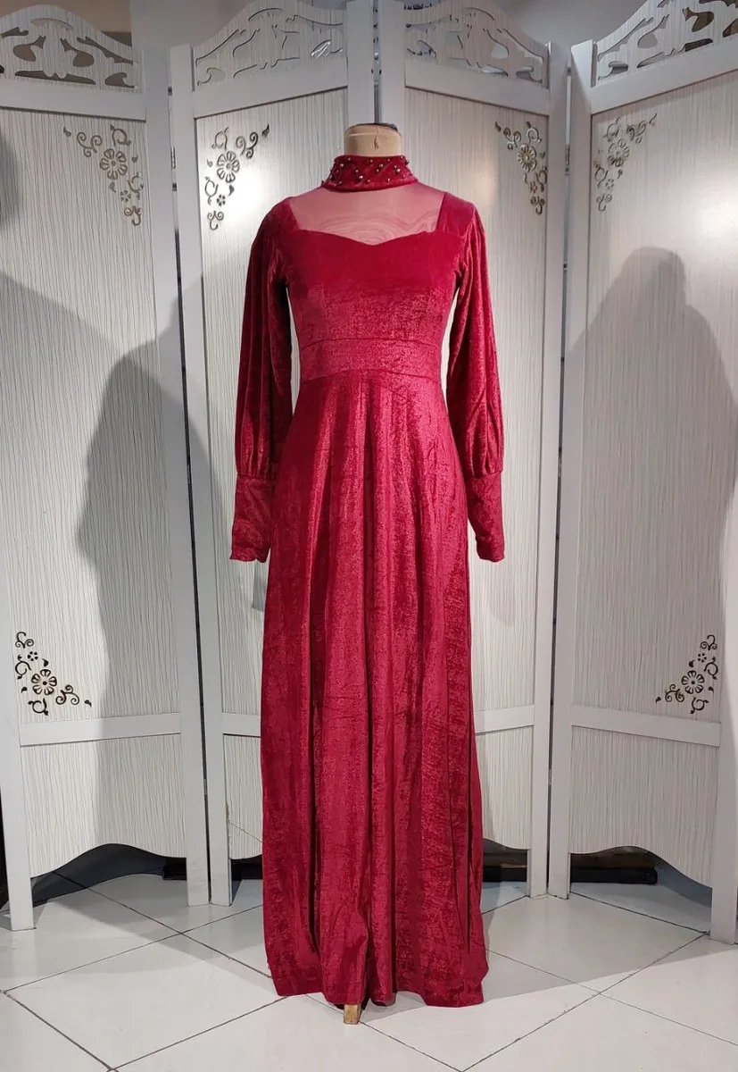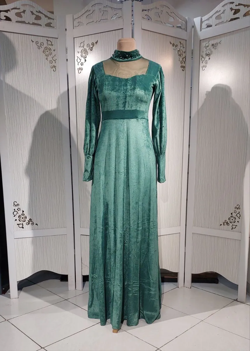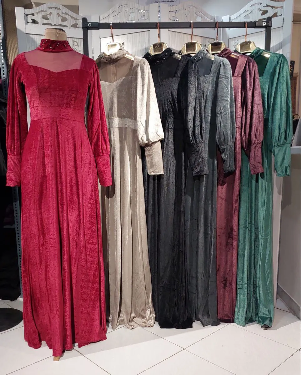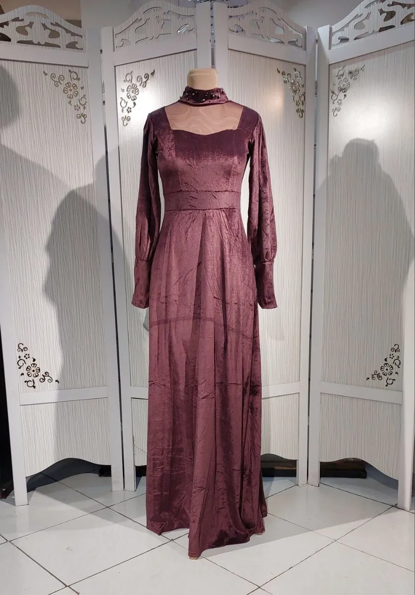 * **بدنه مخملی:** قسمت اصلی لباس از **مخمل درجه یک** ساخته شده که با سنگینی و وقار خود، جلوهای لوکس و باشکوه به استایل شما میبخشد.