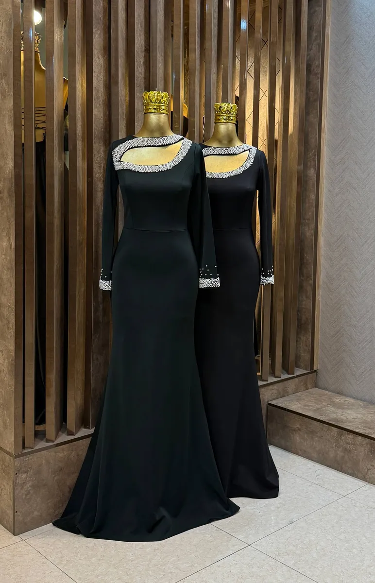 درخشش لطیف مرواریدها بر روی پارچهای با رنگهای عمیق (مشکی، سورمهای و سبز)، تضادی لوکس و چشمنواز ایجاد میکند. این مرواریدها با دقت و ظرافت روی لباس کار شدهاند تا جلوهای شیک و مجلسی به آن ببخشند بدون آنکه از سادگی و وقار طرح اصلی کاسته شود.