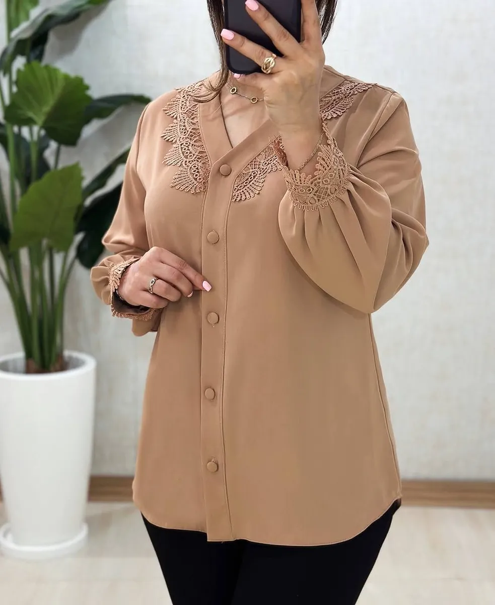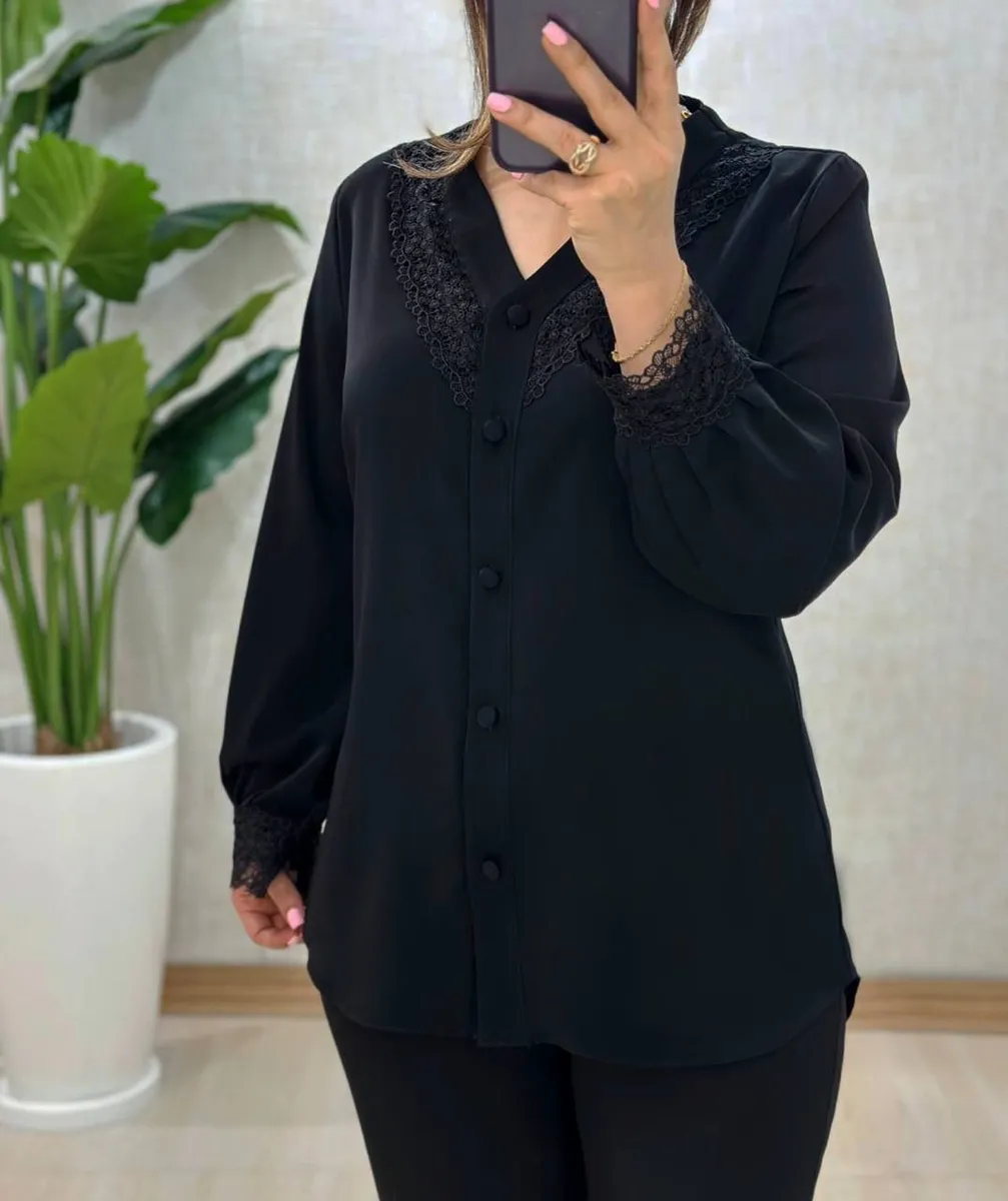 اگر به دنبال یک شومیز مجلسی خاص و متفاوت هستید که هم شیک باشد و هم راحتی بالایی داشته باشد، مدل آسو بهترین انتخاب است. این شومیز با طراحی مزوندوز و خرجکار گیپور ترک، استایلی کاملاً منحصر بهفرد ایجاد میکند.