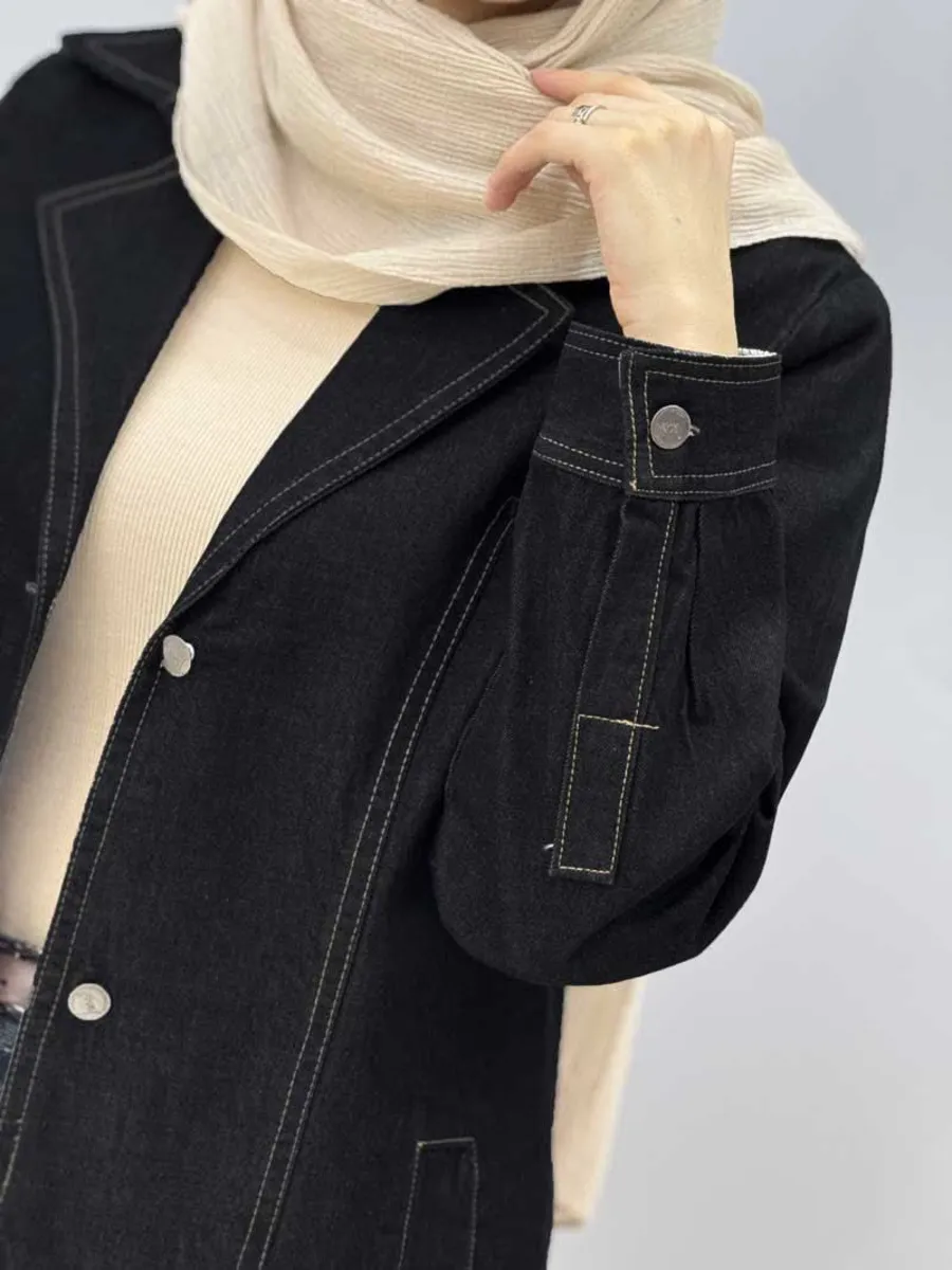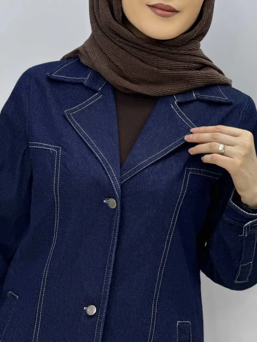 * **طراحی شیک و کاربردی:** **یقه انگلیسی** این کت، یک پیچیدگی خاص و نیمهرسمی به استایل شما اضافه میکند و آن را از کتهای جین معمولی متمایز میسازد.
