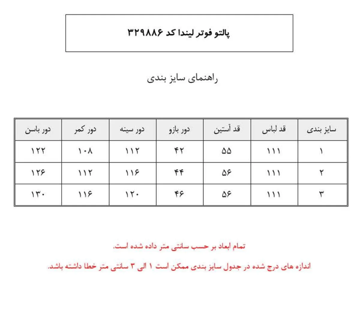 ما با افتخار «پالتو لیدا» را برای خانمهایی که به دنبال **لباسهای سایز بزرگ** شیک و خوشبرش هستند، ارائه میدهیم. سایزبندی این مدل از سایز 42 تا 52، با دقت کامل طراحی شده تا ضمن راحتی، بهترین فرم را روی بدن شما ایجاد کند. برای اطمینان از انتخابی بینقص، حتماً **جدول راهنمای سایز** که همراه با عکسهای محصول قرار داده شده را به دقت بررسی فرمایید.