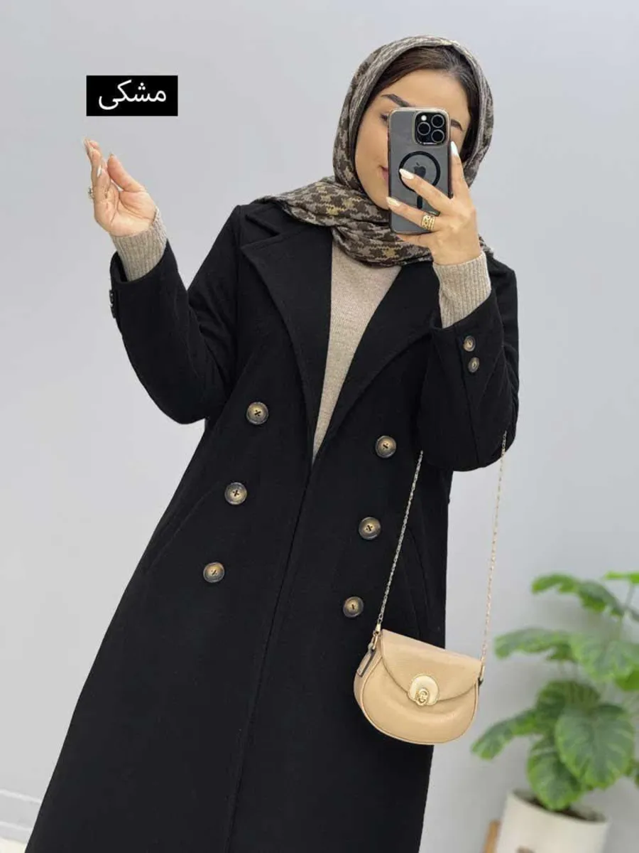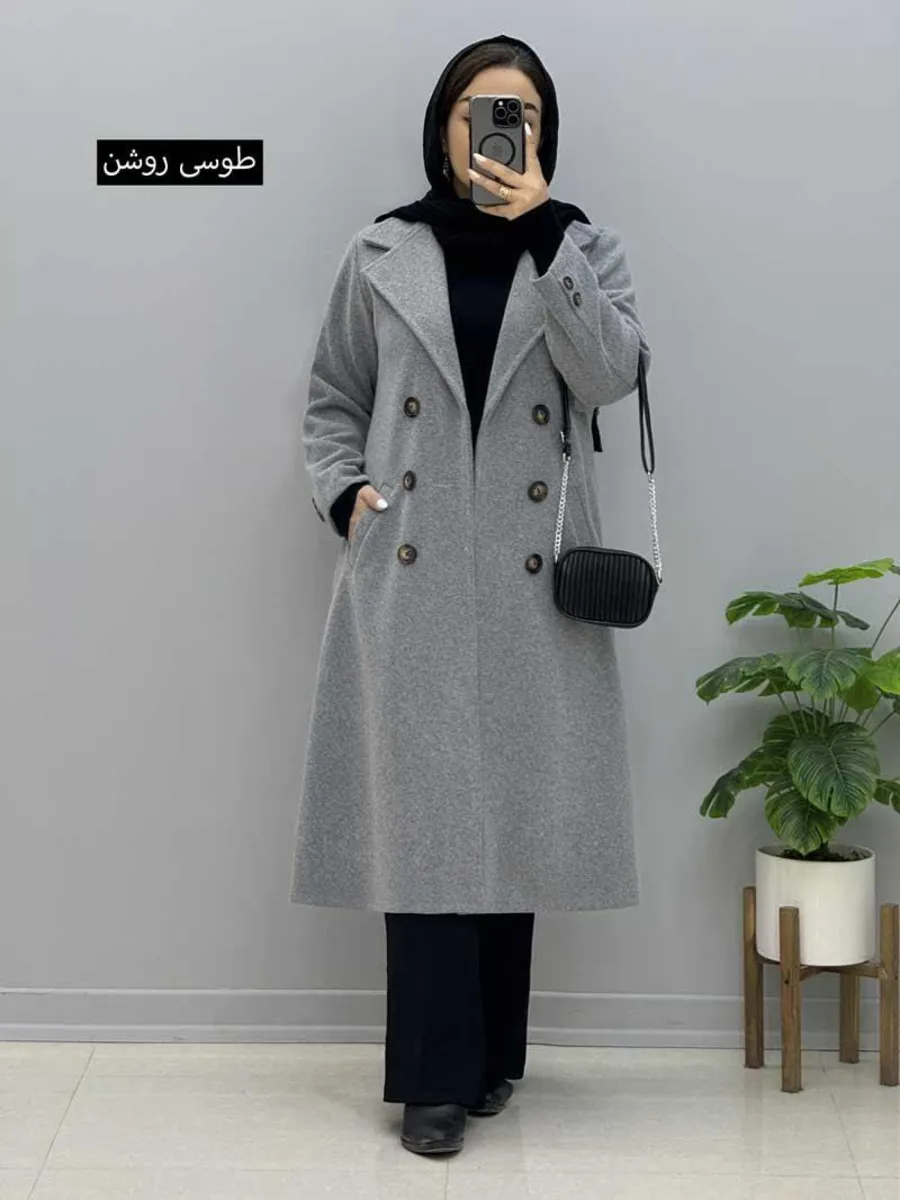 * **ظاهری آراسته و مینیمال:** **دکمههای نما** در جلوی لباس و روی آستینها، یک انتخاب هوشمندانه برای حفظ ظاهر یکپارچه و مرتب پالتو است. این طراحی به شما اجازه میدهد تا پالتو را به صورت جلوباز استفاده کرده و استایلی بیدردسر و جذاب بسازید.