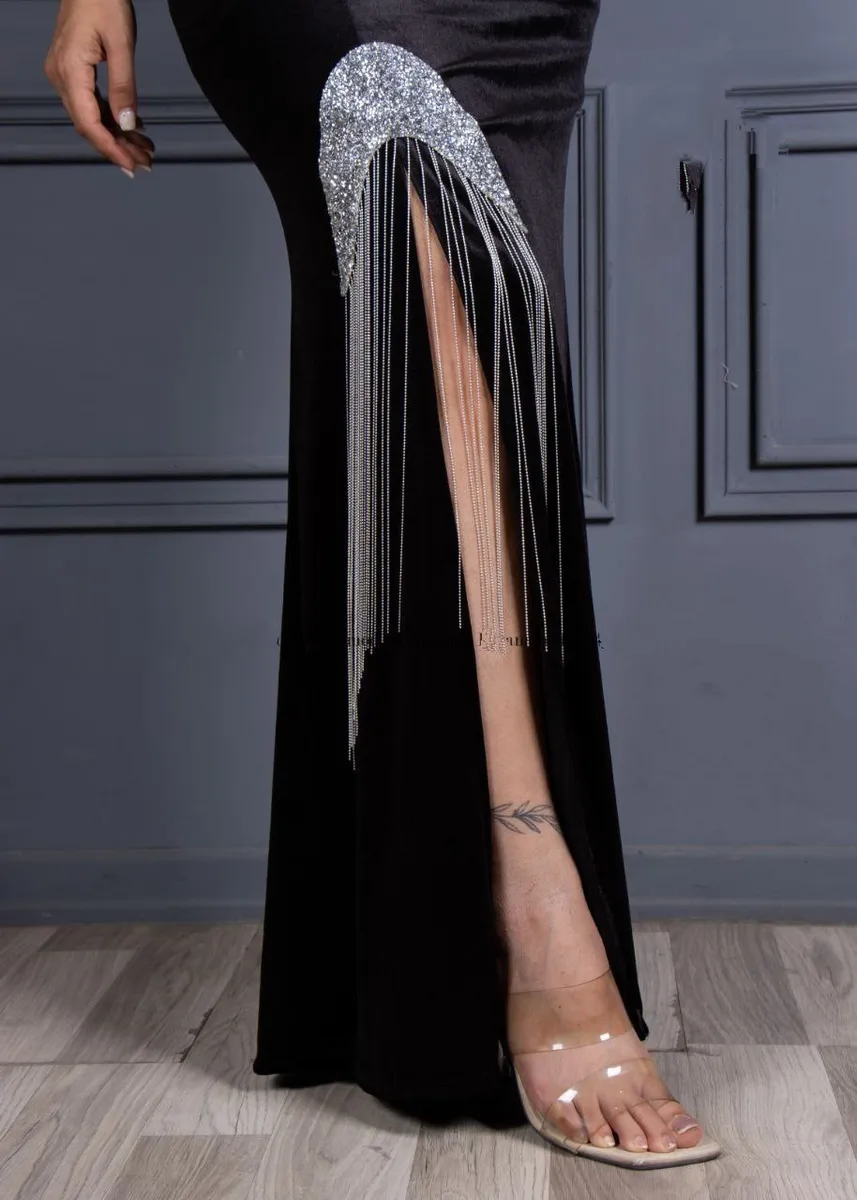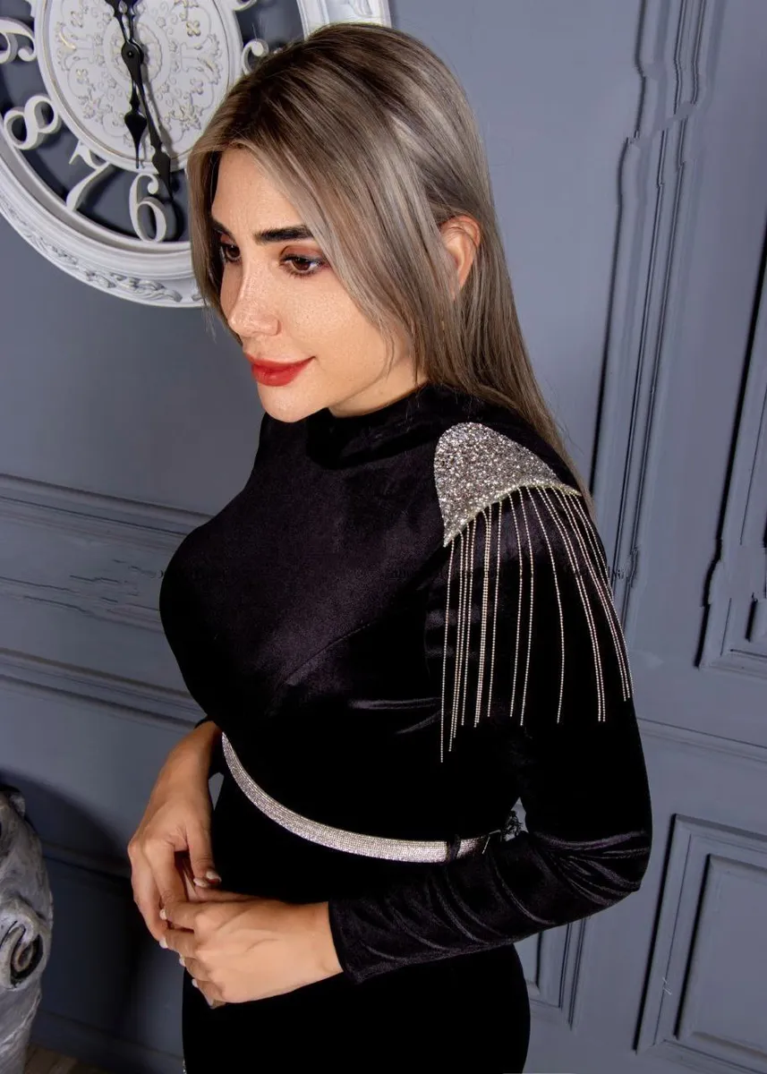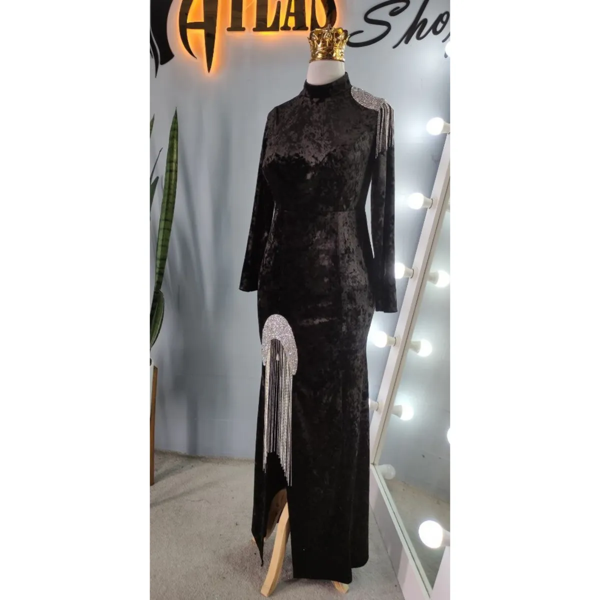 لباس مجلسی "طاووس" تجسمی از زیبایی کلاسیک و وقار زنانه است. این پیراهن ماکسی که از **پارچه مخمل درجه یک** دوخته شده، بافتی نرم و لوکس دارد که به زیبایی بر تن مینشیند و در نور، درخششی عمیق و چشمنواز ایجاد میکند. رنگ **مشکی** جاودانه آن، این لباس را به یک بوم بینقص برای درخشش شما و اکسسوریهایتان تبدیل میکند.