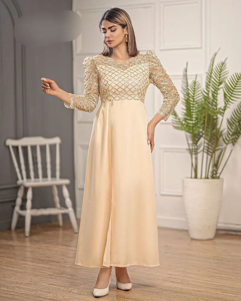 تصور کنید لباسی بر تن دارید که ترکیبی از دو دنیای متفاوت است؛ لطافت و طرحهای برجسته و رویایی گیپور وارداتی که نگاهها را به خود خیره میکند و در کنار آن، سادگی شیک و ریزش بینقص پارچه مازراتی که اندام شما را به زیباترین شکل ممکن قاب میگیرد. این دقیقاً همان تجربهای است که این پیراهن مزوندوز برای شما به ارمغان میآورد.
