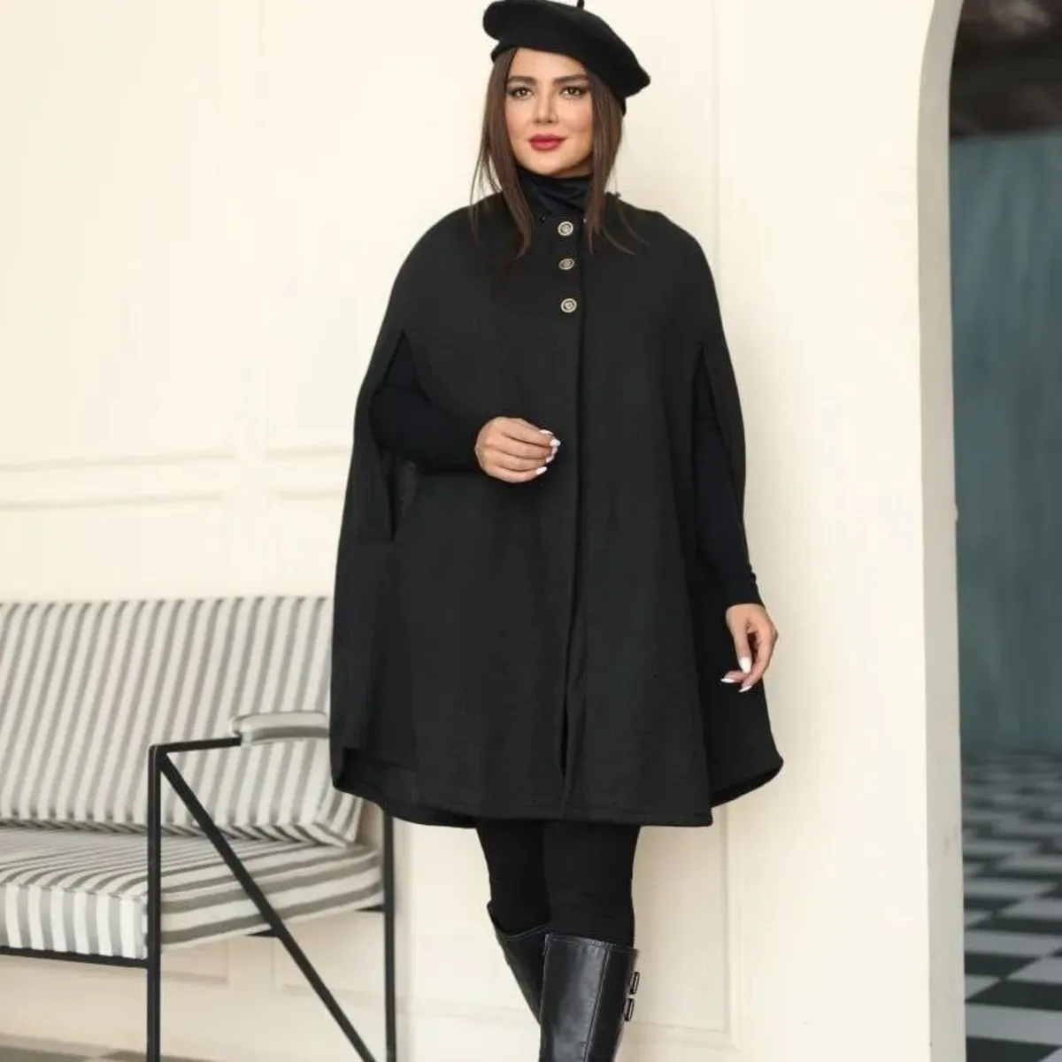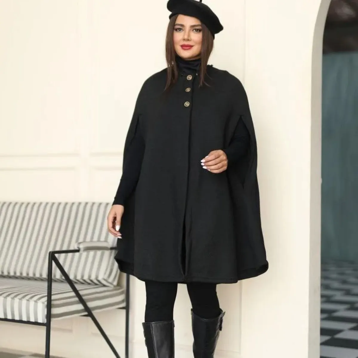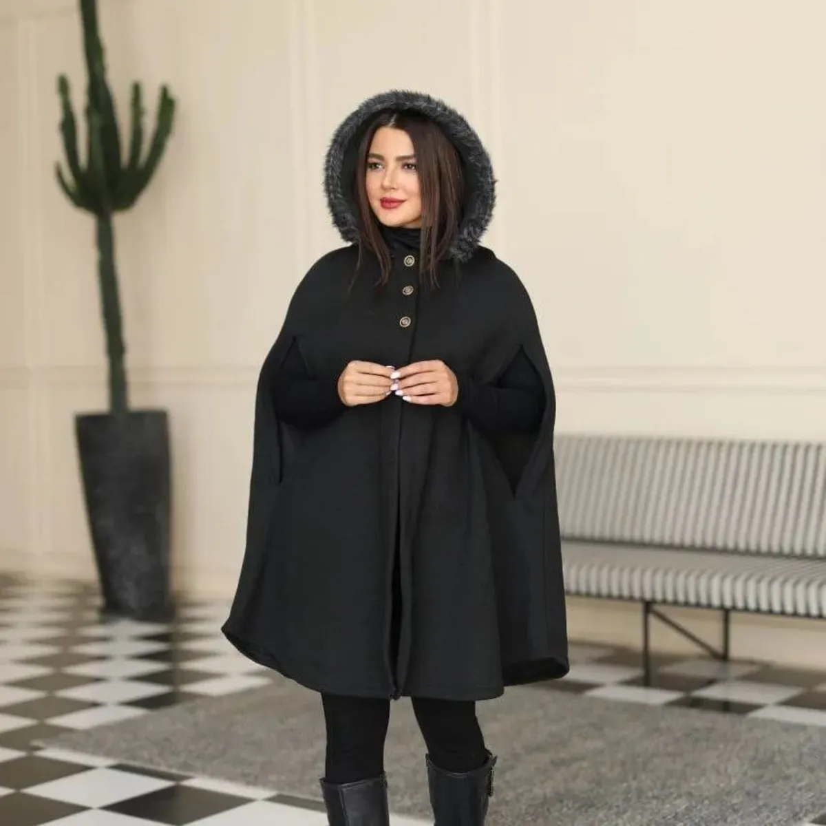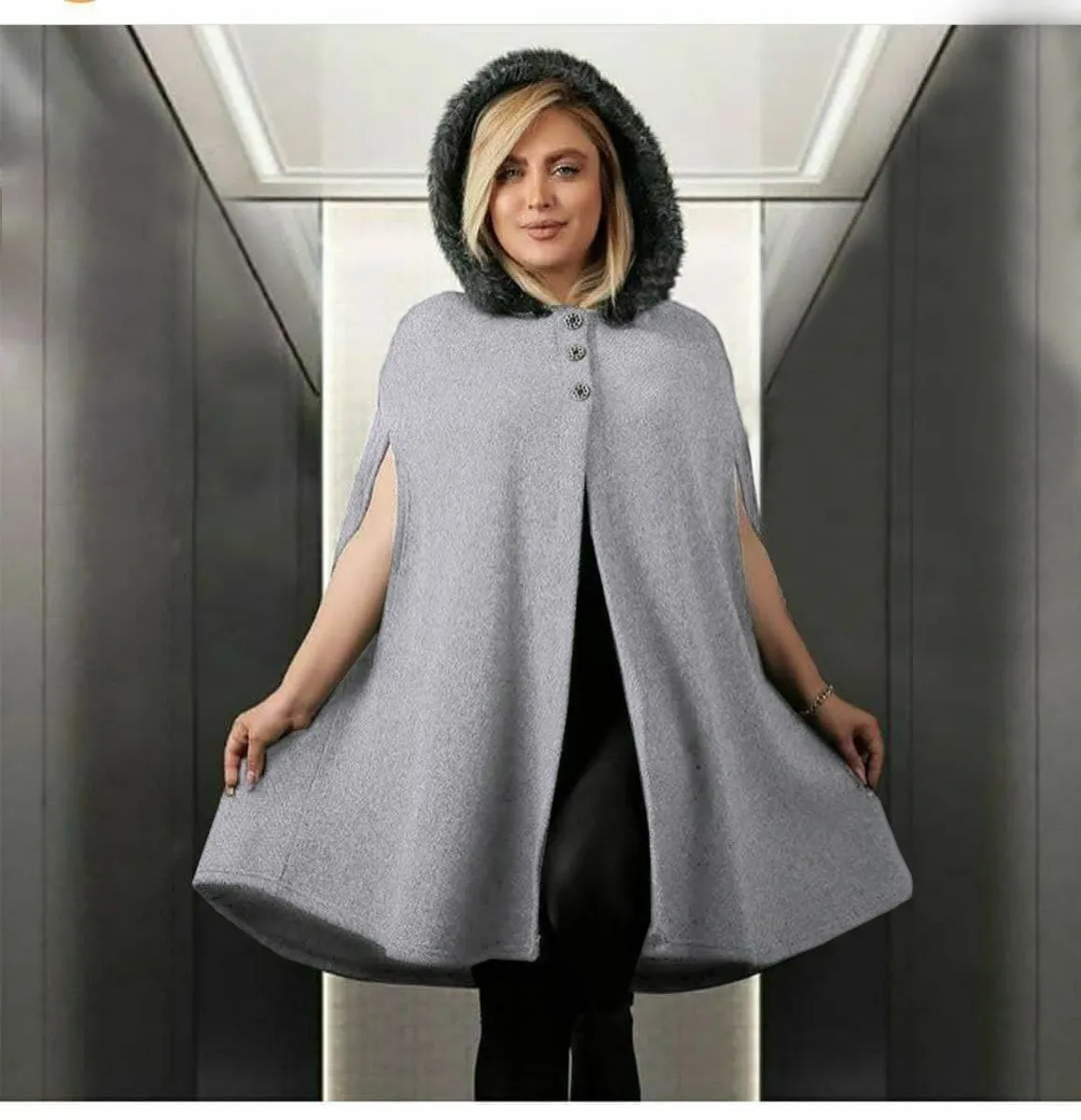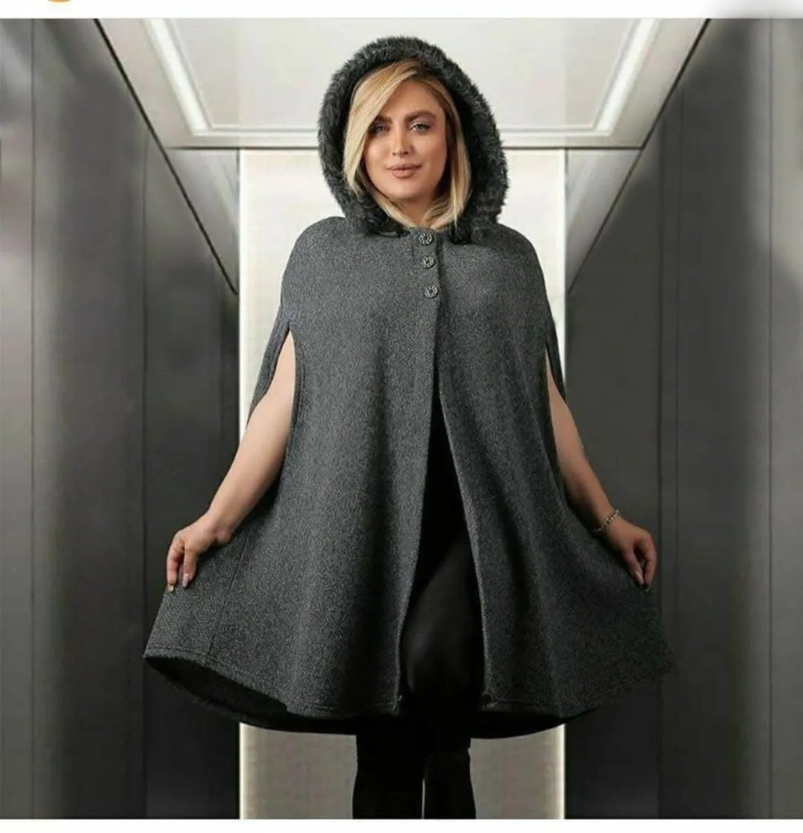 پانچ شبنم، بافت فشرده و لطیف، مخصوص پاییز و زمستان طراحی شده و در سه رنگ پرطرفدار طوسی تیره، طوسی روشن و نسکافهای عرضه میشود. این پانچ آستین حلقهای با کلاه، مناسب برای پوشش بارداری یا خانمهای سایز بزرگ است و با دور سینه فراخ (حدود 130 سانت) و فری سایز تا 48، حداکثر آزادی و راحتی را فراهم میکند. قد کار حدود 95 سانتیمتر است و به خوبی روی لباسهای مختلف قرار میگیرد.