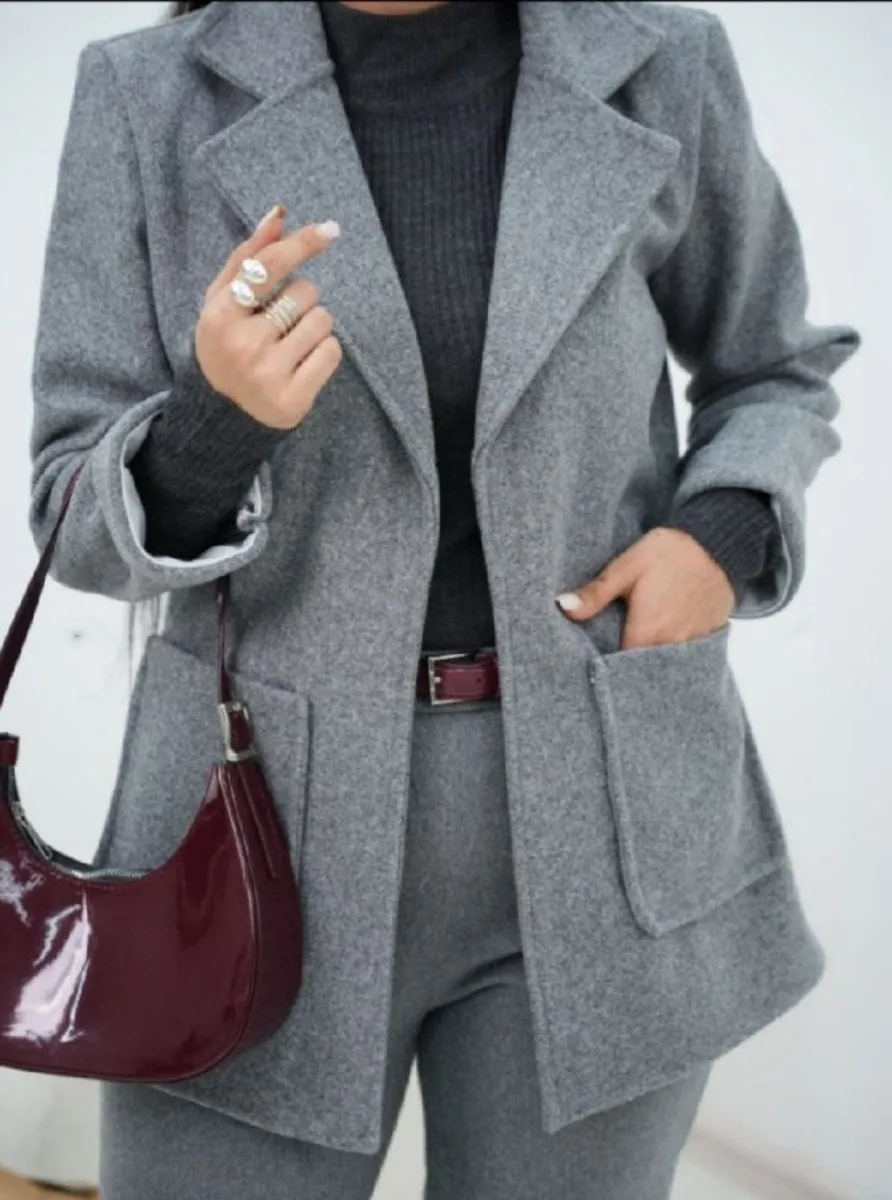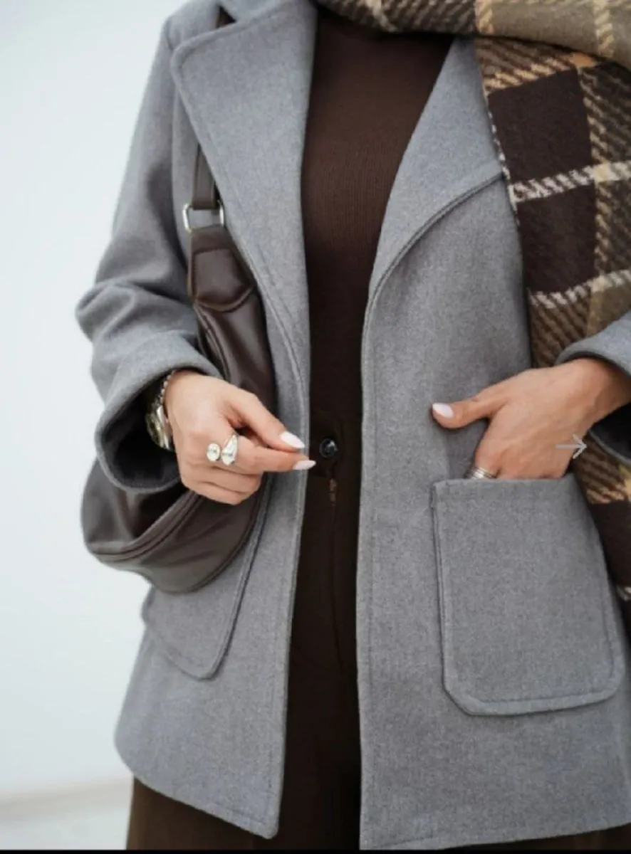 این پالتو با **برش کتی (Blazer Coat)** طراحی شده که یکی از محبوبترین ترندهای جهانی است.