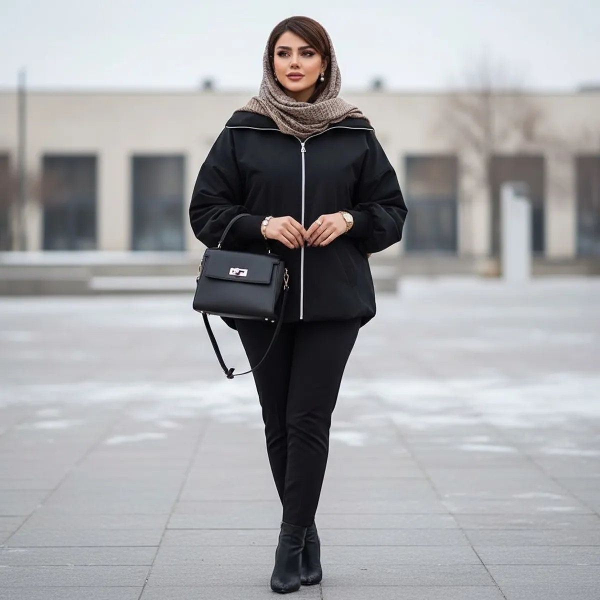 این کاپشن به صورت **فری سایز (مناسب 38 تا 48)** طراحی شده تا با تنخوری عالی، هم برای استایلهای جذب و هم برای استایلهای آزاد و راحت مناسب باشد. میتوانید به سادگی در زیر آن یک هودی یا بافت ضخیم بپوشید و همچنان آزادی حرکت کامل داشته باشید.