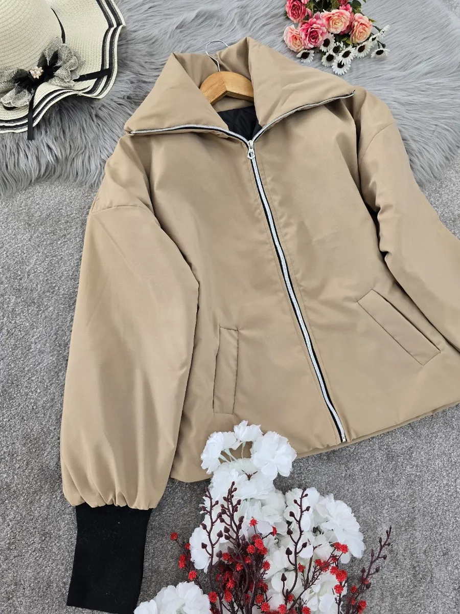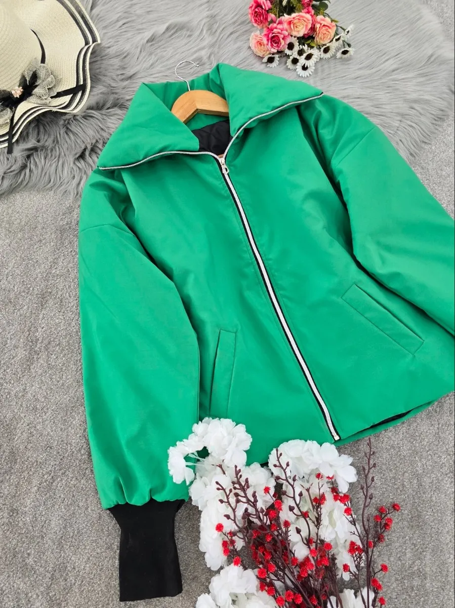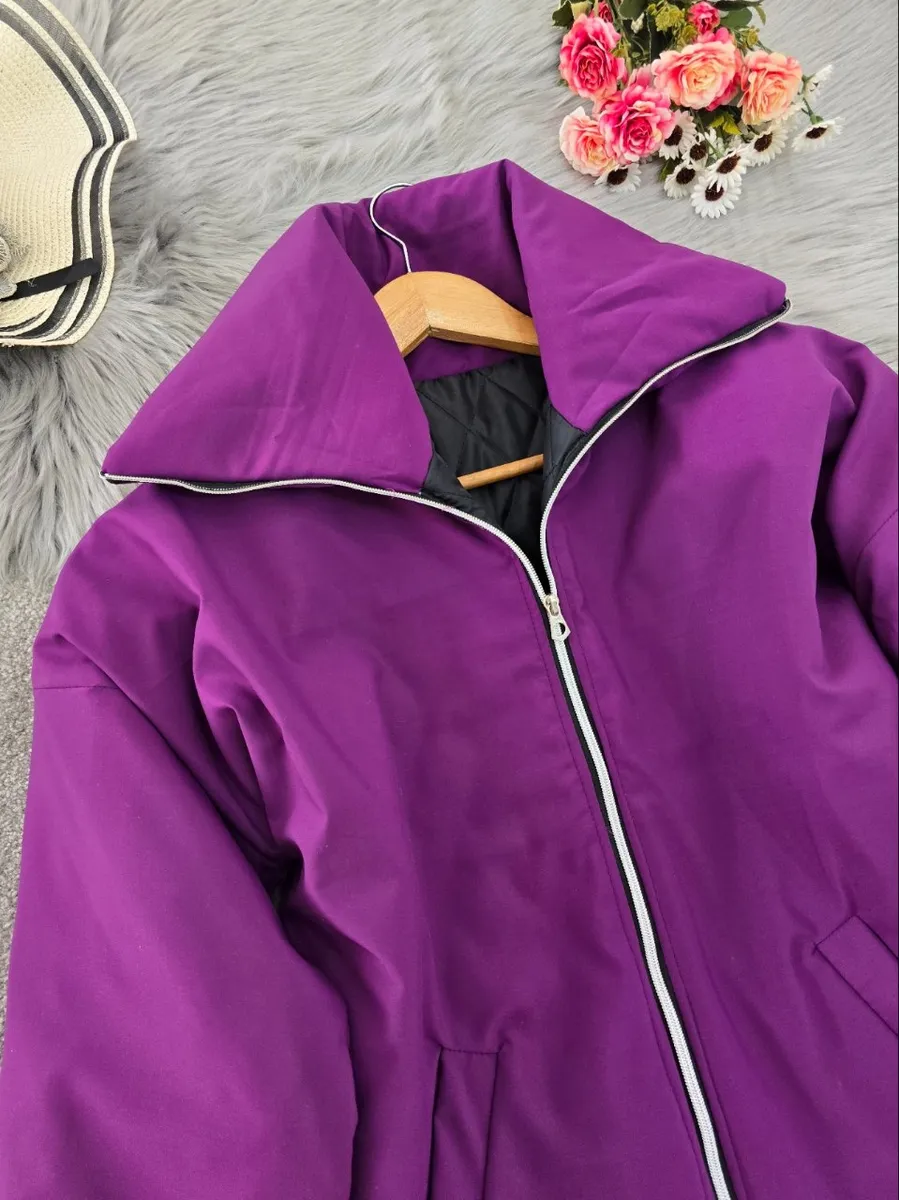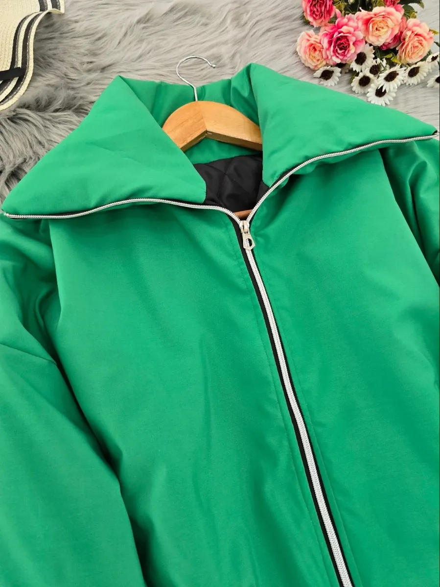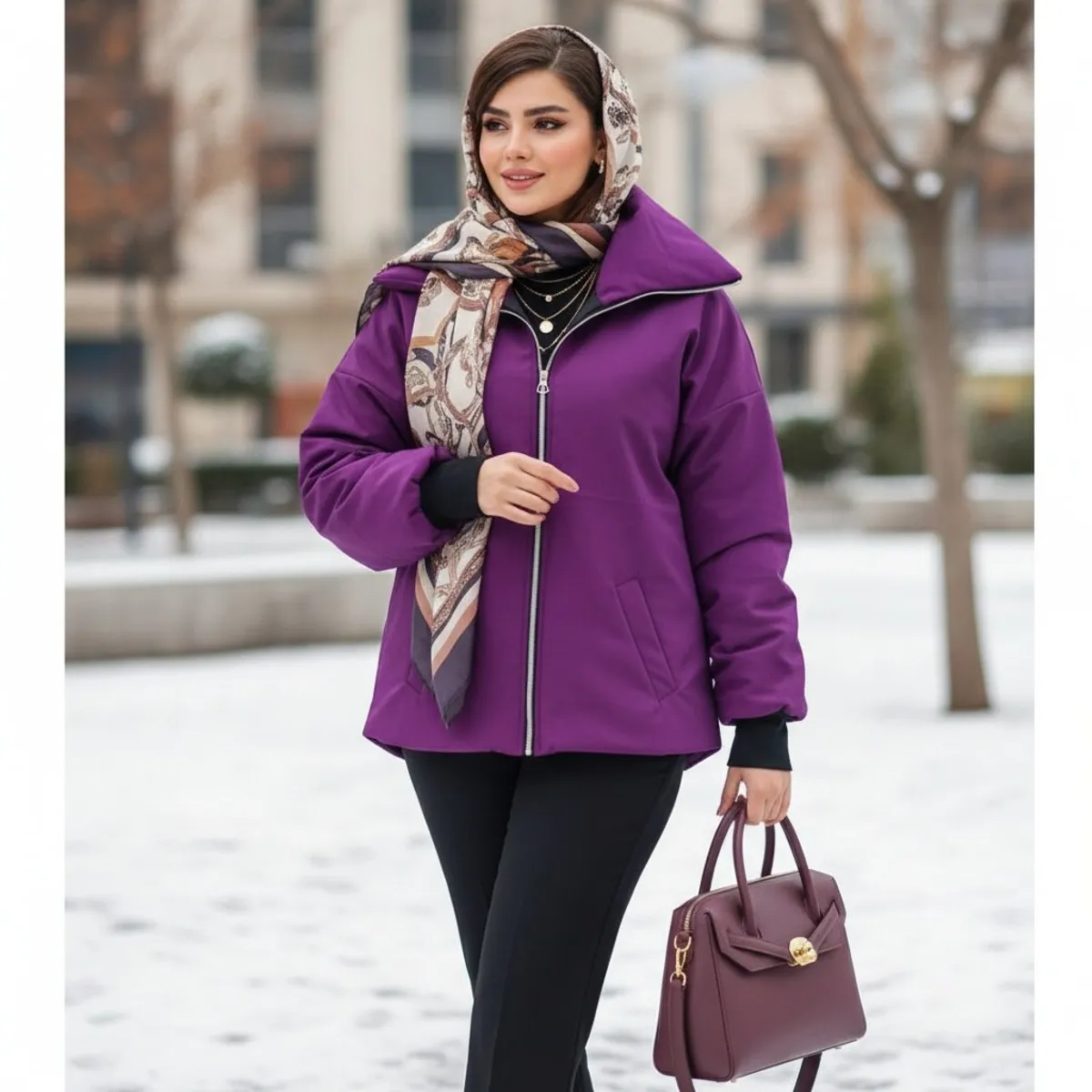 * **قد کوتاه و استایل امروزی:** قد 62 سانتیمتری این کاپشن، آن را برای ست کردن با انواع شلوارهای جین، لگها و جاگرهای فاق بلند ایدهآل میکند و یک سیلوئت جذاب و امروزی برای شما میسازد.