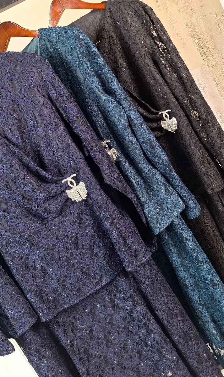 * **دانتل گل برجسته اعلا:** پارچه شومیز از دانتل گل برجسته با عیار بالا انتخاب شده که جلوهای بسیار لوکس، فاخر و چشمنواز دارد. طرح برجسته گلها، به لباس عمق و زیبایی خاصی میبخشد.