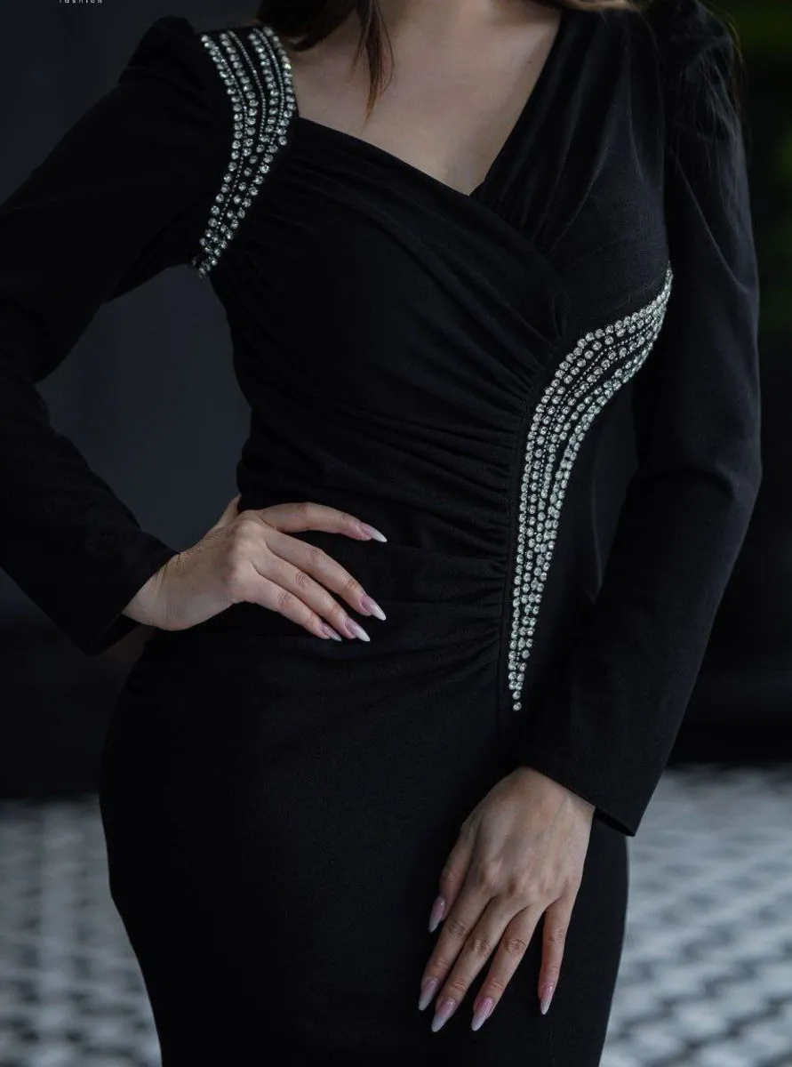 برش این لباس به صورت ماکسی و اندامی طراحی شده تا قد شما را بلندتر و اندامتان را کشیدهتر نشان دهد. جزئیات کار شده روی لباس (که بسته به مدل میتواند شامل سنگدوزی، ملیله، یا دانتل باشد) با دقت و ظرافت تمام اجرا شده و جلوهای لوکس و چشمنواز به آن بخشیده است. این جزئیات، مانیسا را از یک پیراهن ساده به یک لباس شب فاخر و بهیادماندنی تبدیل کردهاند.