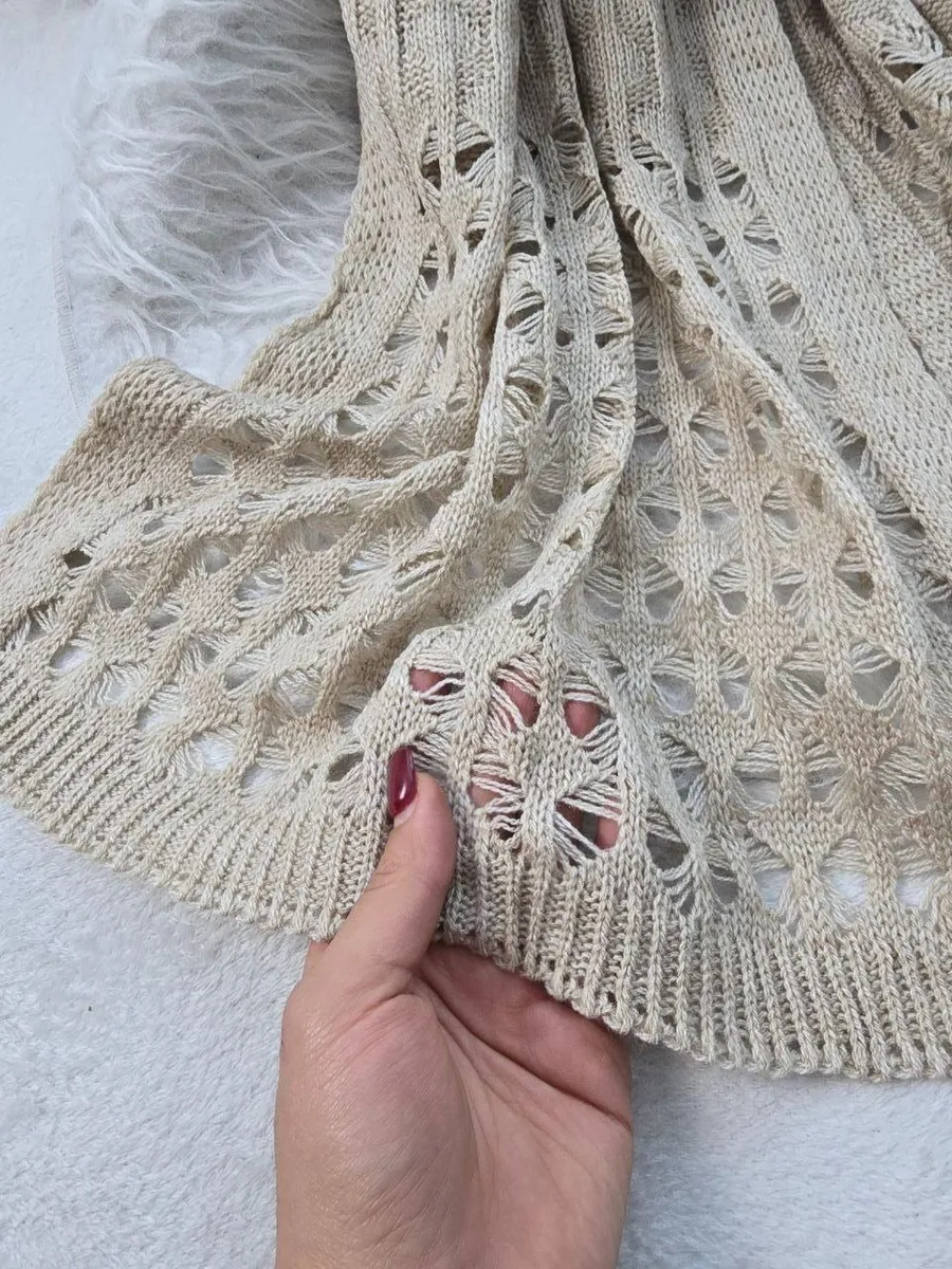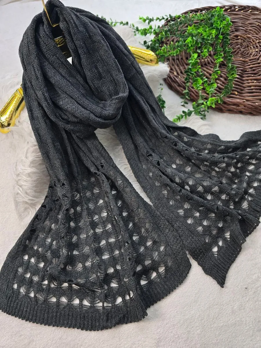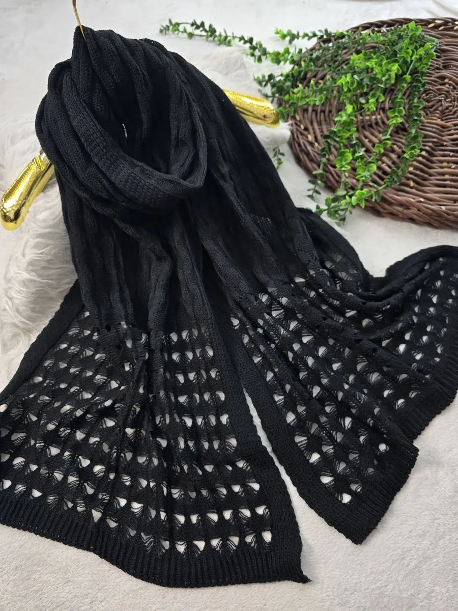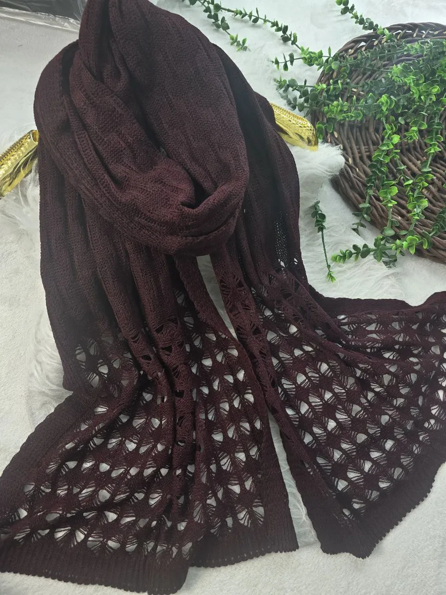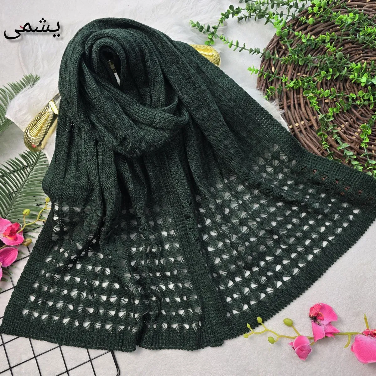 شال بافت طرح سه بعدی ،کل کار بافت طرحدار هست و فقط قسمت دستک شال حالت توری داره