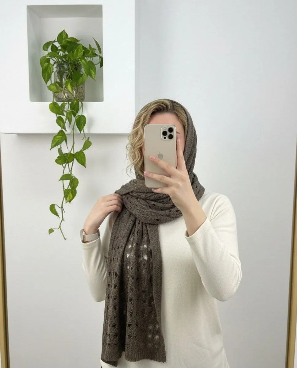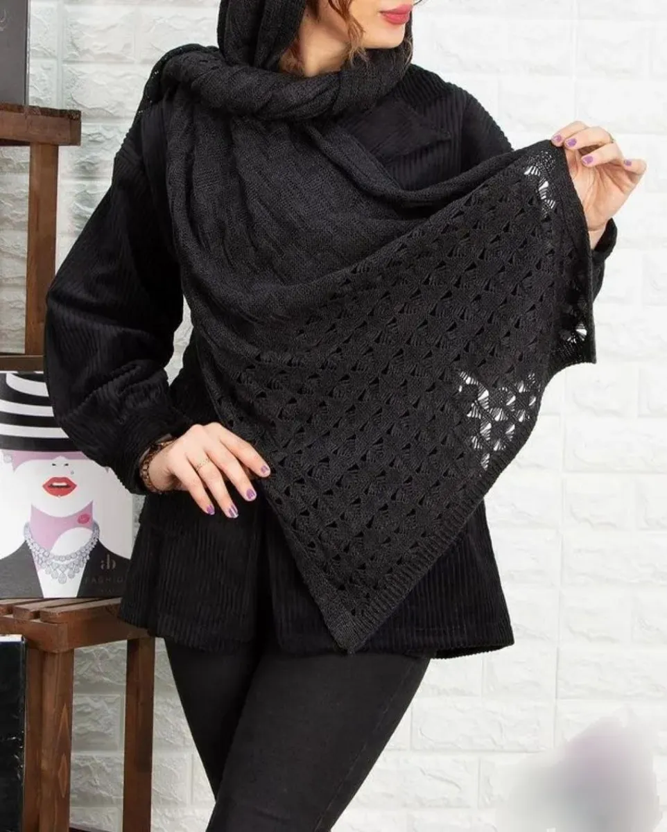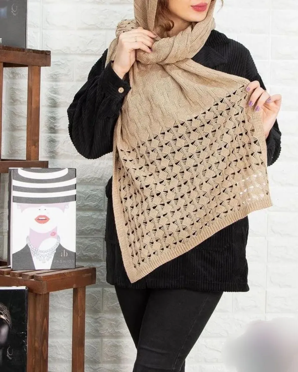 عنوان: استایل پاییزی خود را با شال بافت طرح سهبعدی کامل کنید!