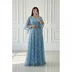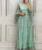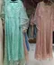 * **رنگبندی پاستلی و رؤیایی:** رنگهای آسمانی، سبز روشن، صورتی، طوسی و کرم، pallete رنگی لطیف و مدرنی را تشکیل میدهند که کاملاً با حس رمانتیک و درخشان لباس هماهنگ است.