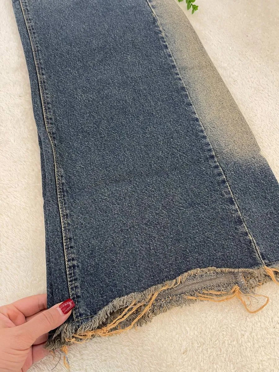 طراحی شافل و مدرن: ویژگی اصلی این شلوار، جزئیات “شافل” (Shuffle) یا نامتقارن در قسمت پایین و لبههای جیب است. این برشهای نامنظم و خلاقانه، ظاهری جسورانه و هنری به شلوار میبخشد.