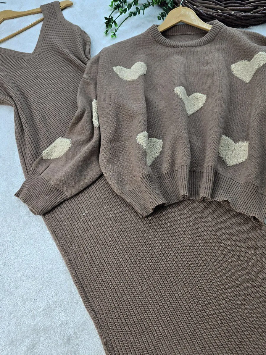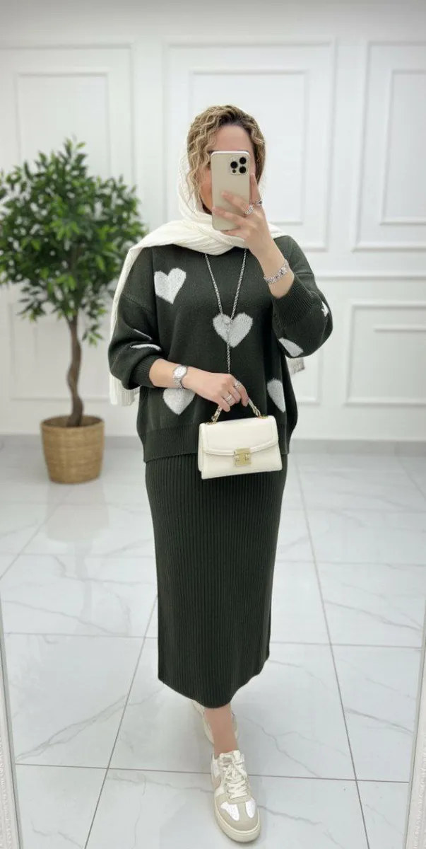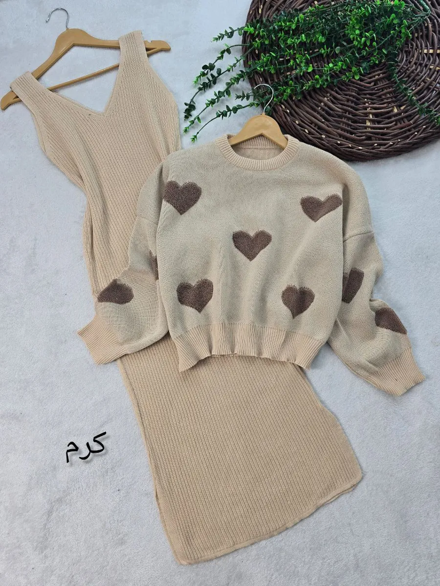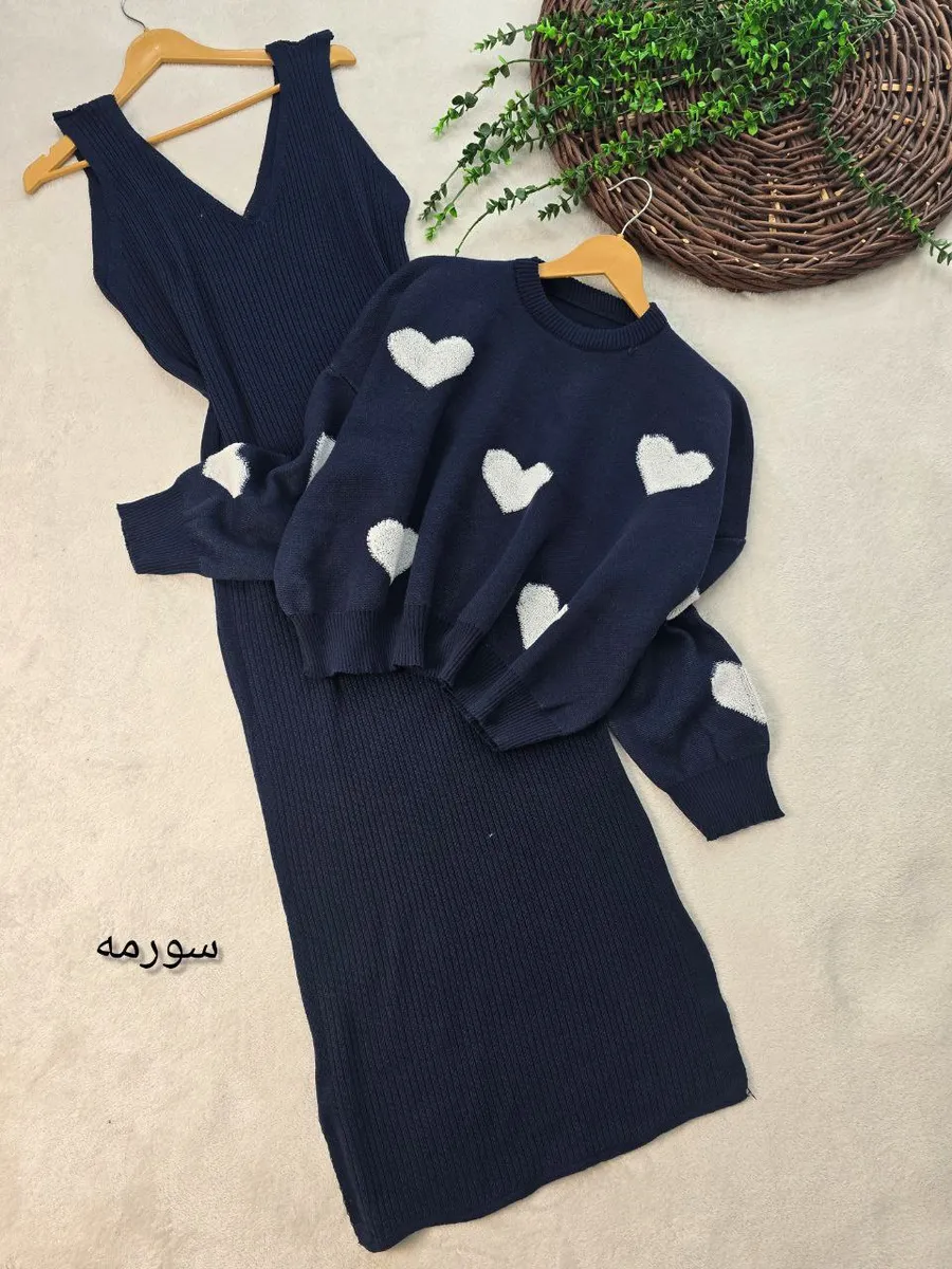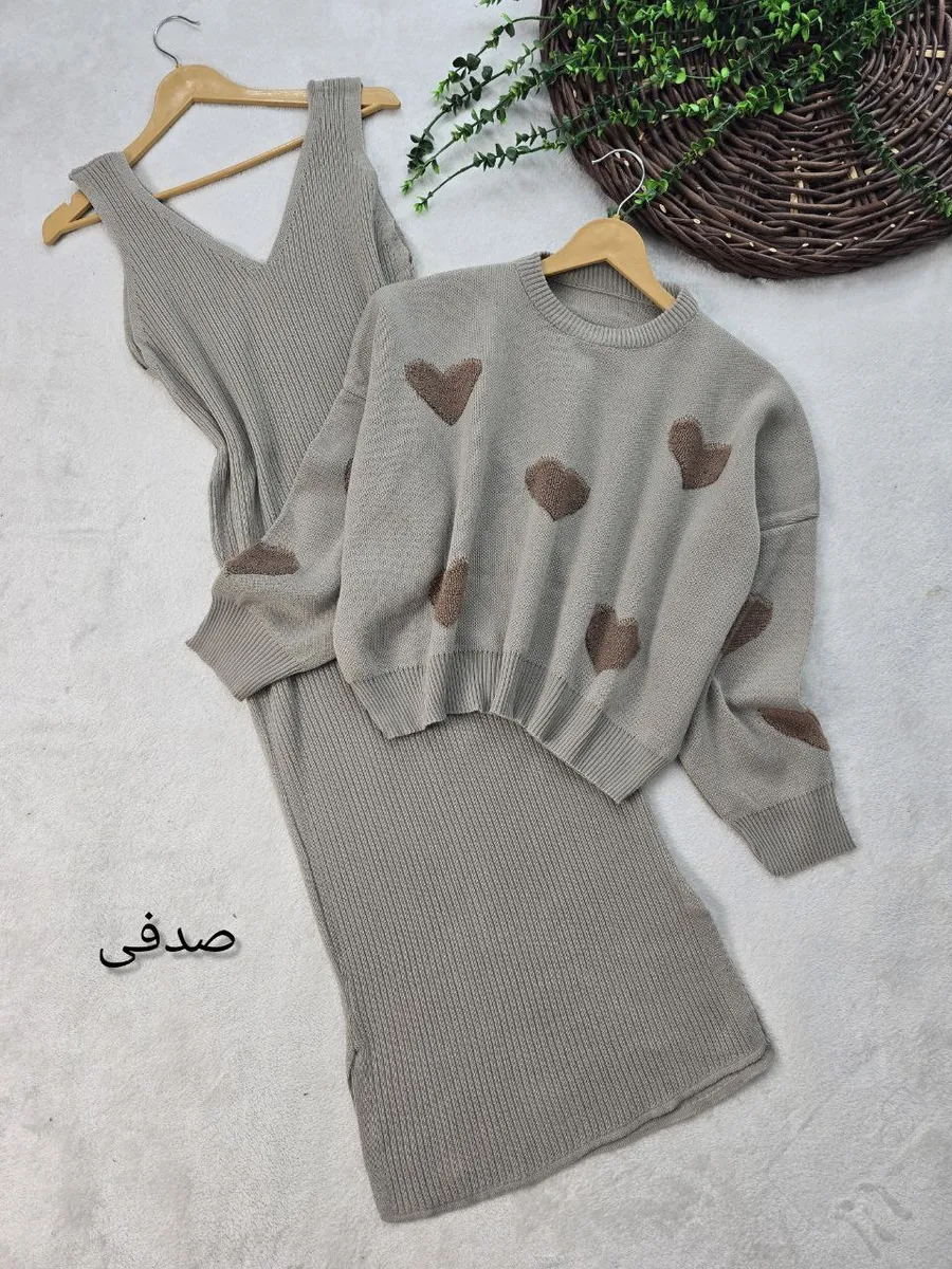 ست بافت قلب، یکی از خاصترین و پینترستیترین ستهای پاییزی ماست که تلفیقی از زیبایی، راحتی و کاربردی بودن را برای استایل شما به ارمغان میآورد. این ست شامل یک سارافون بلند و یک رویه نیمه کیمانو است که هر کدام به تنهایی یا در کنار هم قابل استفادهاند و همین ویژگی، آن را به یک خرید اقتصادی و چندمنظوره تبدیل کرده است.