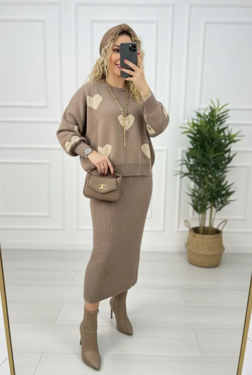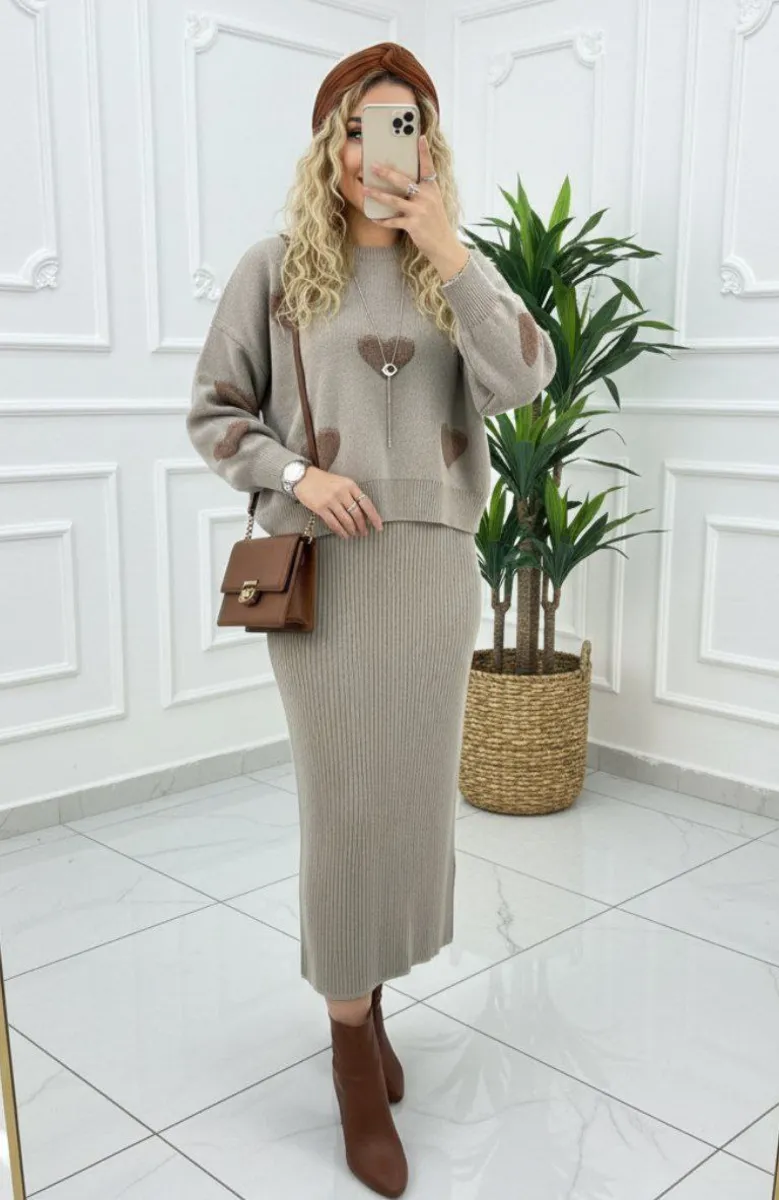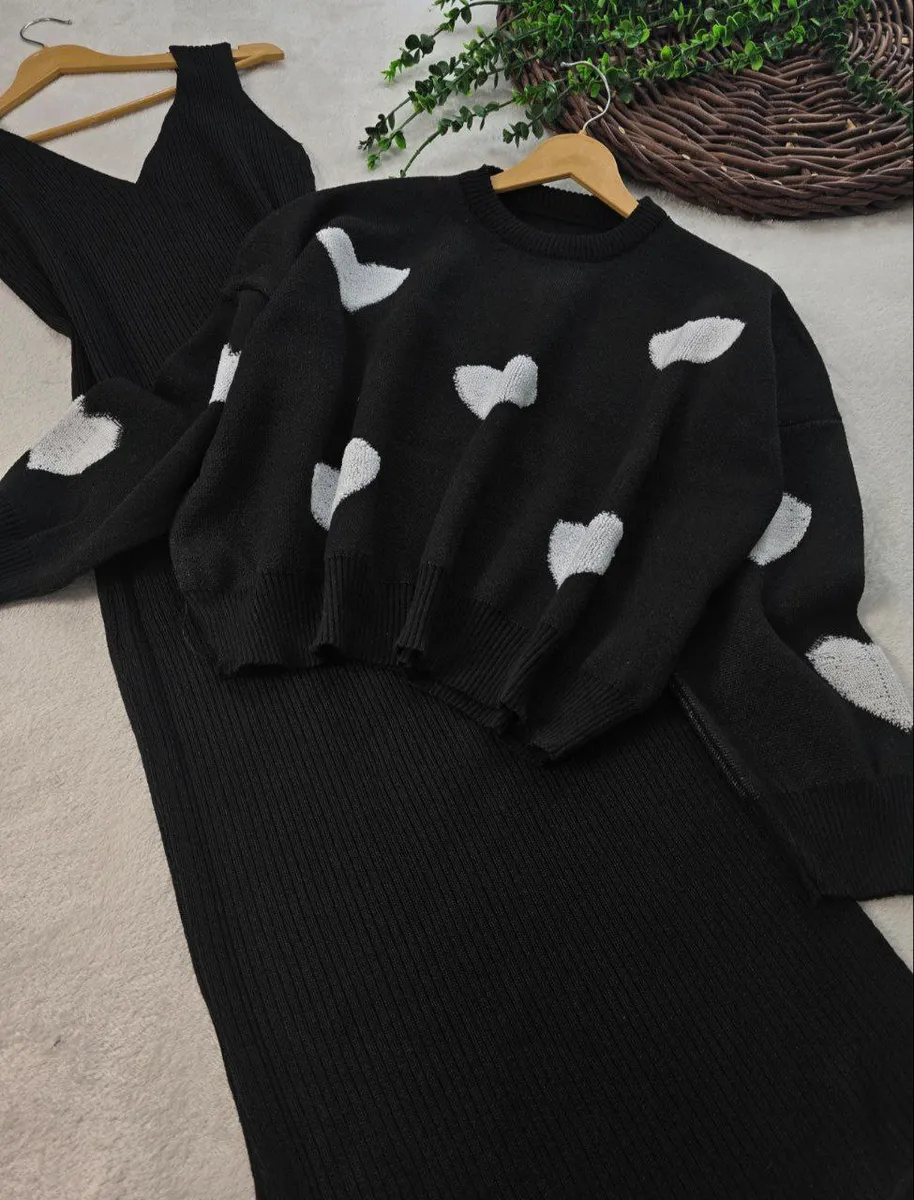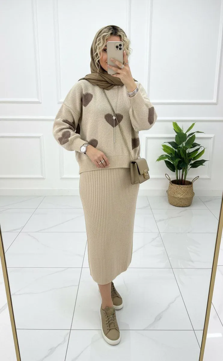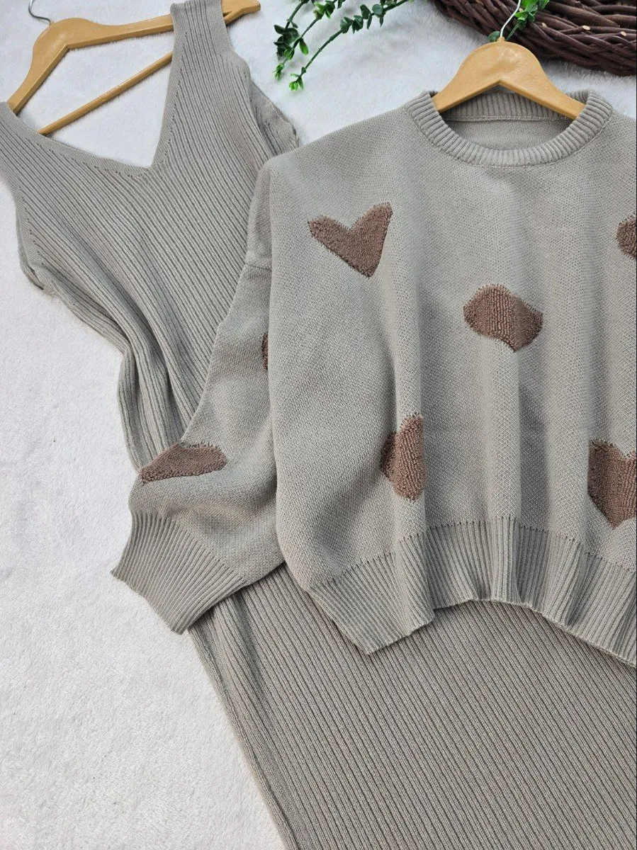 ست بافت قلب، یکی از خاصترین و پینترستیترین ستهای پاییزی ماست که تلفیقی از زیبایی، راحتی و کاربردی بودن را برای استایل شما به ارمغان میآورد. این ست شامل یک سارافون بلند و یک رویه نیمه کیمانو است که هر کدام به تنهایی یا در کنار هم قابل استفادهاند و همین ویژگی، آن را به یک خرید اقتصادی و چندمنظوره تبدیل کرده است.