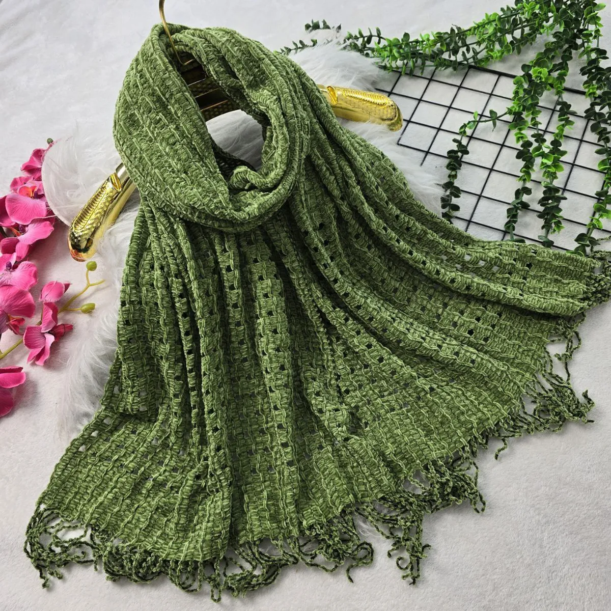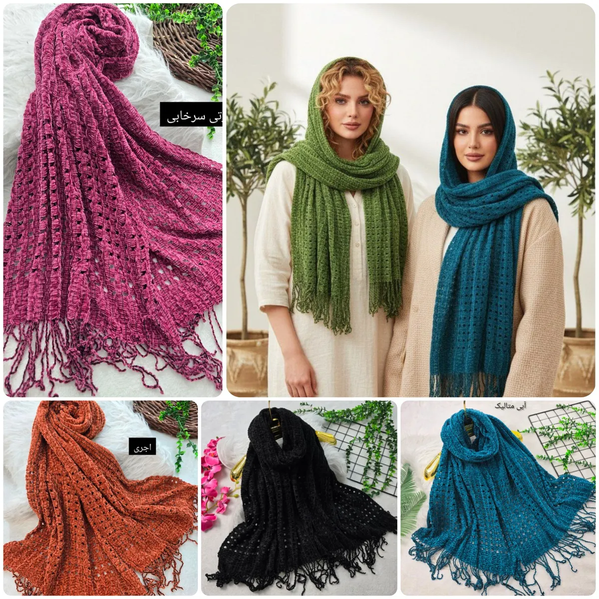 رنگبندی متنوع و ترند شامل آبی درباری، آجری، سبز ماچا، صورتی سرخابی، مشکی و ملهای، امکان ست کردن با مانتو و پالتوهای پاییزه را آسان کرده و در عین حال به استایل شما جلوهای خاص و متمایز میبخشد. شال بافت مخمل انتخابی عالی برای خانمهایی است که به دنبال اصالت، کیفیت و زیبایی در پوشش پاییزی خود هستند