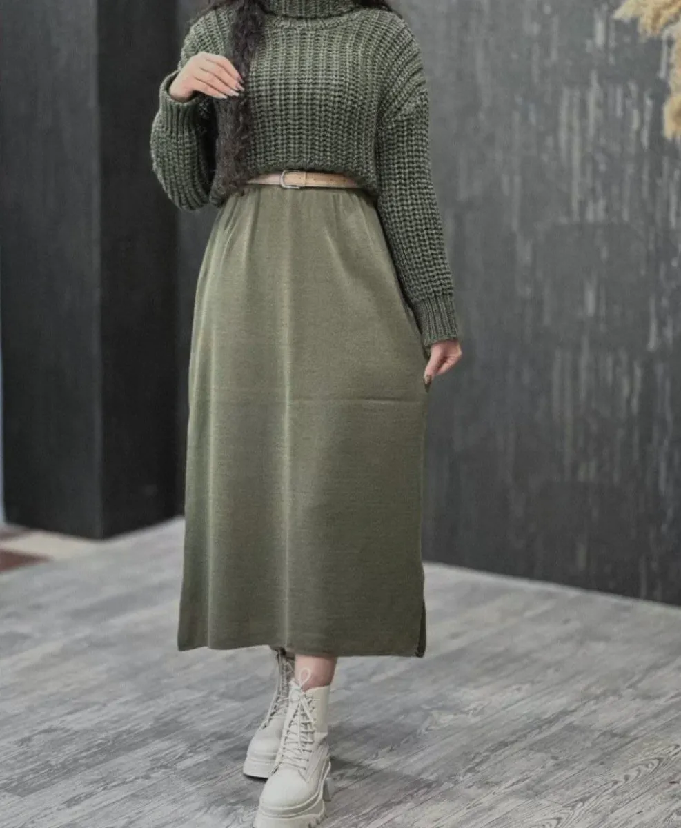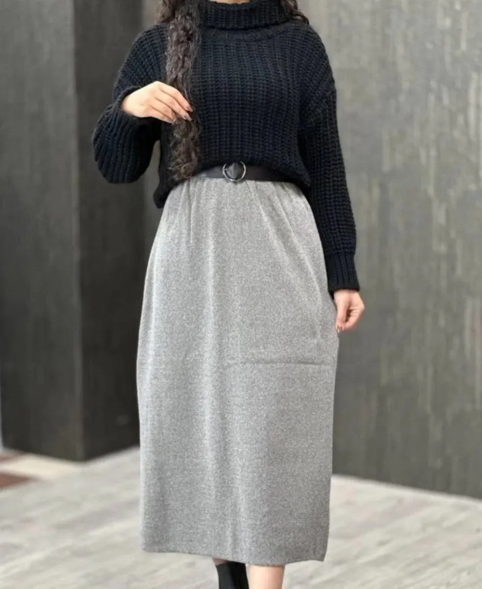 دامن بافت پرتراکم با چاک بغل طراحی شده، ترکیبی بینظیر از راحتی و شیکپوشی برای روزهای سرد پاییز و زمستان.