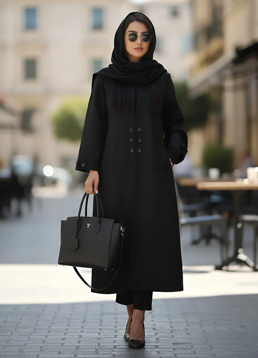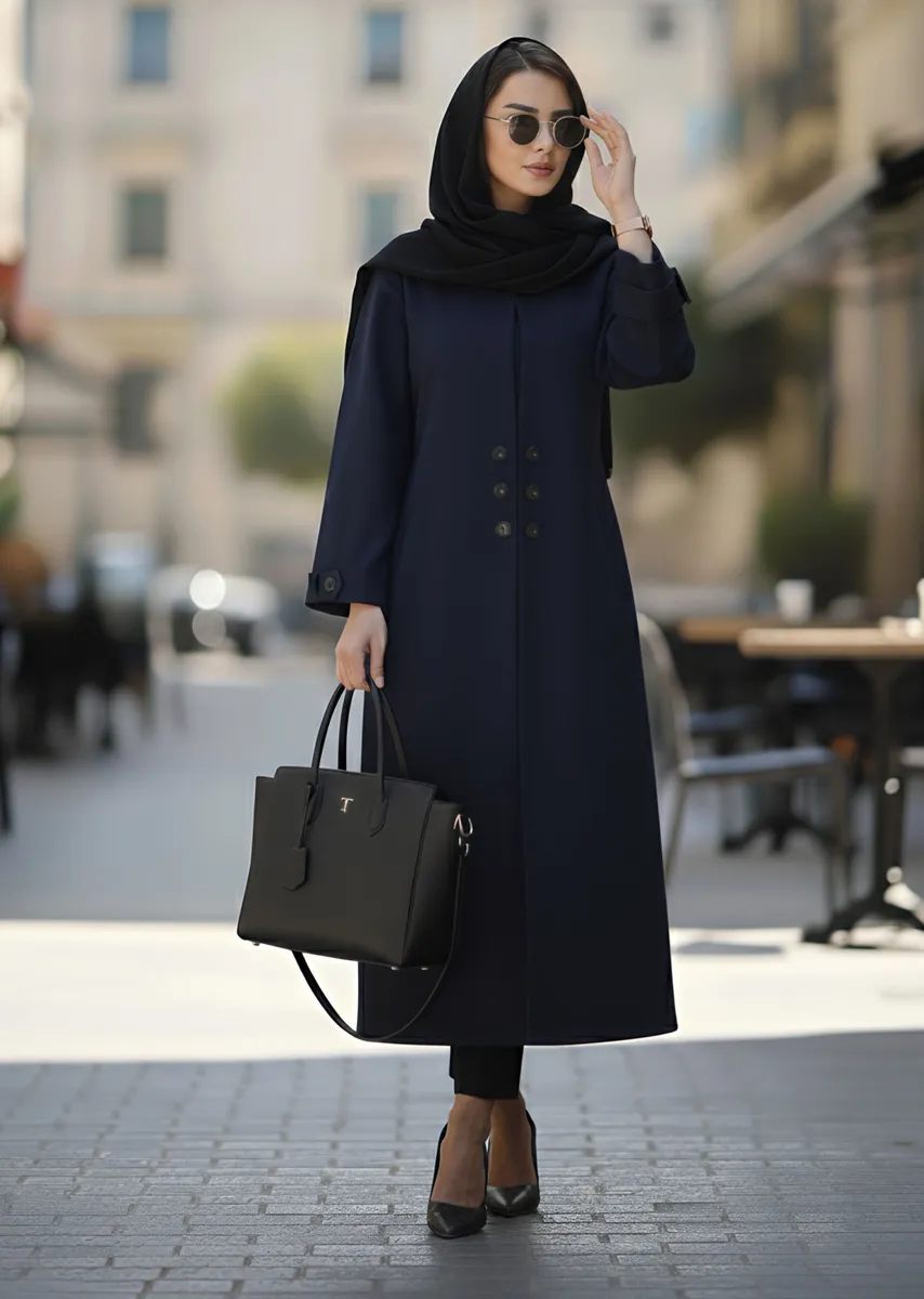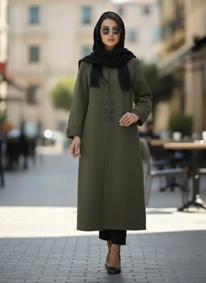 مانتوی بلند رها از کلکسیون پاییزی، انتخابی ایدهآل برای خانمهای علاقهمند به پوشش کامل و استایل مدرن.
