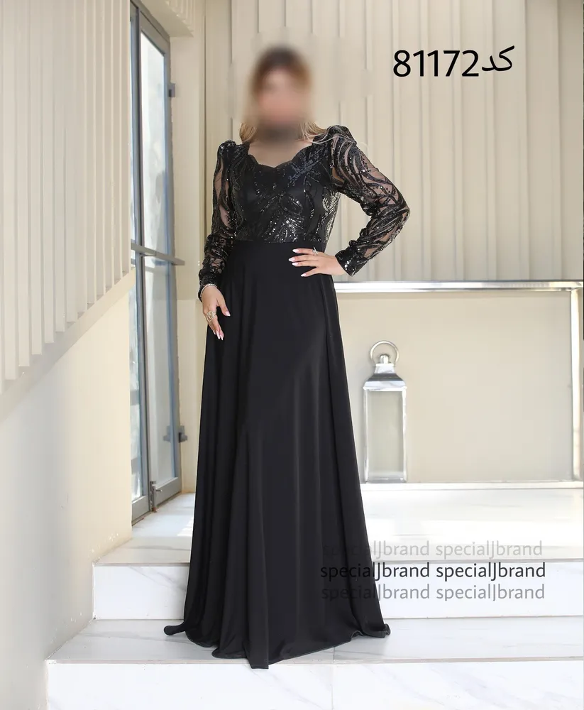 لباس مجلسی ماکسی دلسا با ترکیب پولککاری و سنگدوزی روی پارچه حریر و غواصی، شاهکاری از زیبایی و لوکس بودن.