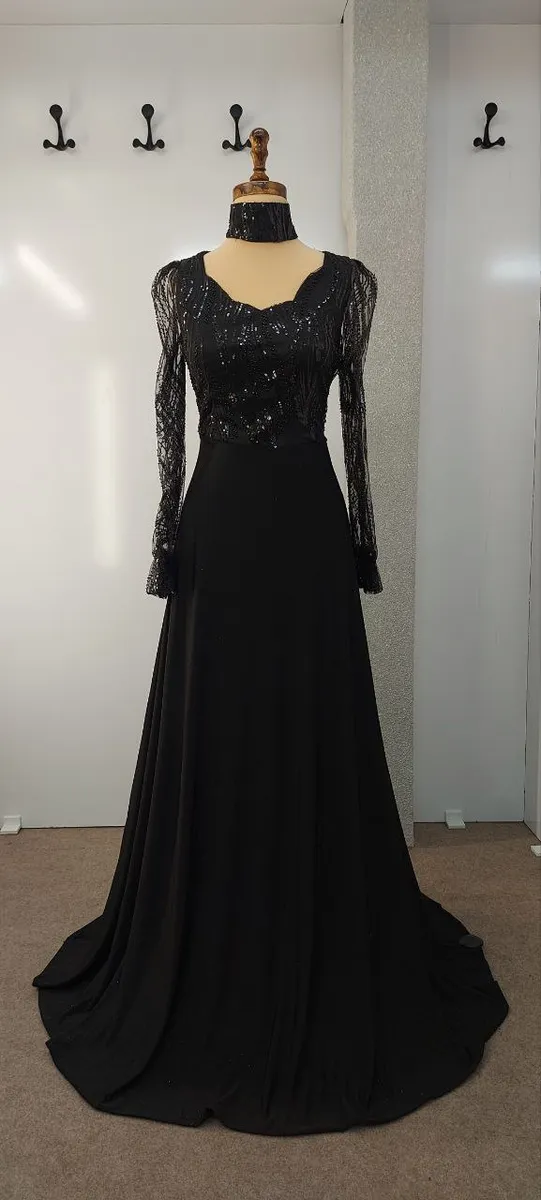 جنس : حریر پولک کاری و سنگ کاری و غواصی (قد155)(چوکر به لباس وصل نیست) (پشت زیپ)
