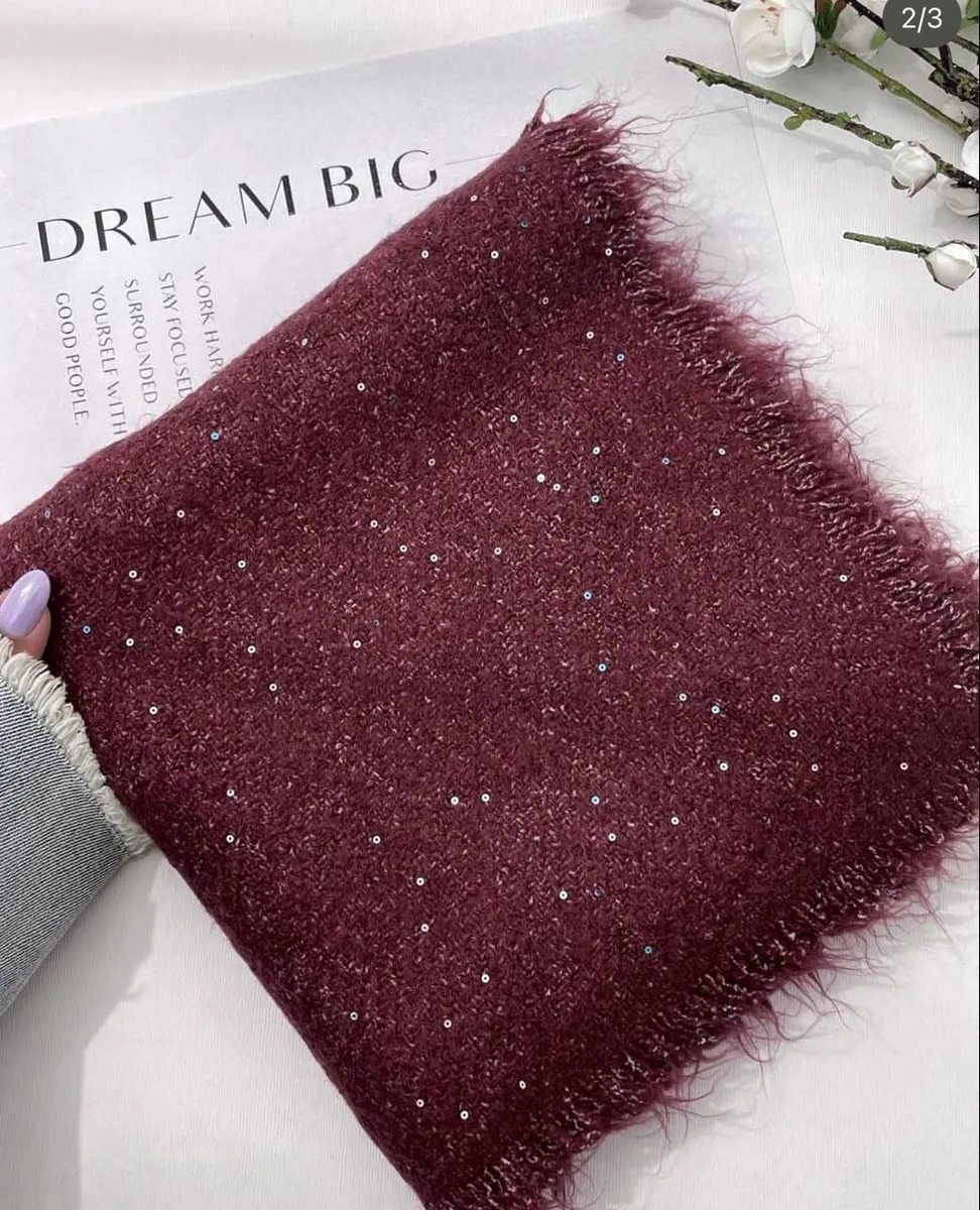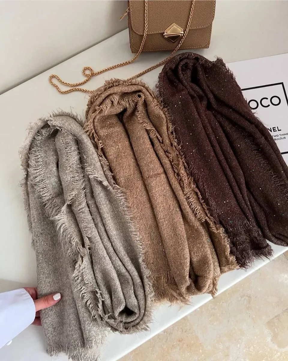 شال بوکله پولکی وارداتی از کالکشن پاییز، ترکیبی بینظیر از گرما، نرمی و درخشش برای روزهای خنک پاییز و زمستان.