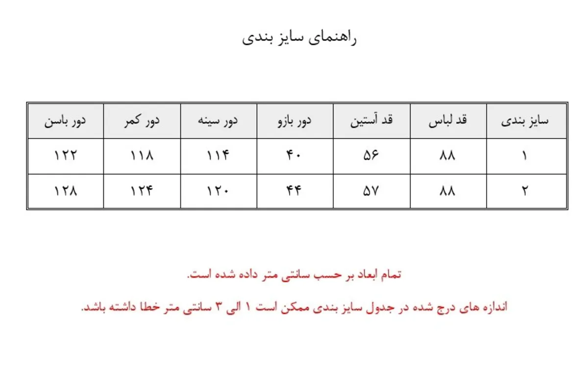سایزبندی: شامل سایز 1 – 2 مناسب سایز 42 الی 52
