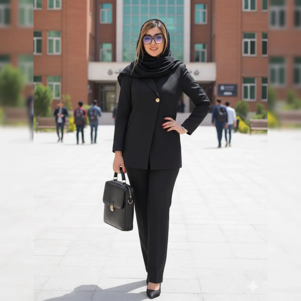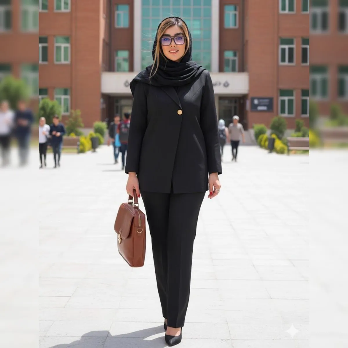 ست مانتو شلوار اداری آذر یکی از کارهای خاص و خوشدوخت کالکشن رسمی مودینو است که برای استایل رسمی و محیطهای کاری طراحی شده است. این مدل با طراحی کت کوتاه و دوخت تمیز و ظریف خود، جلوهای جدی و درعینحال بسیار زنانه دارد.