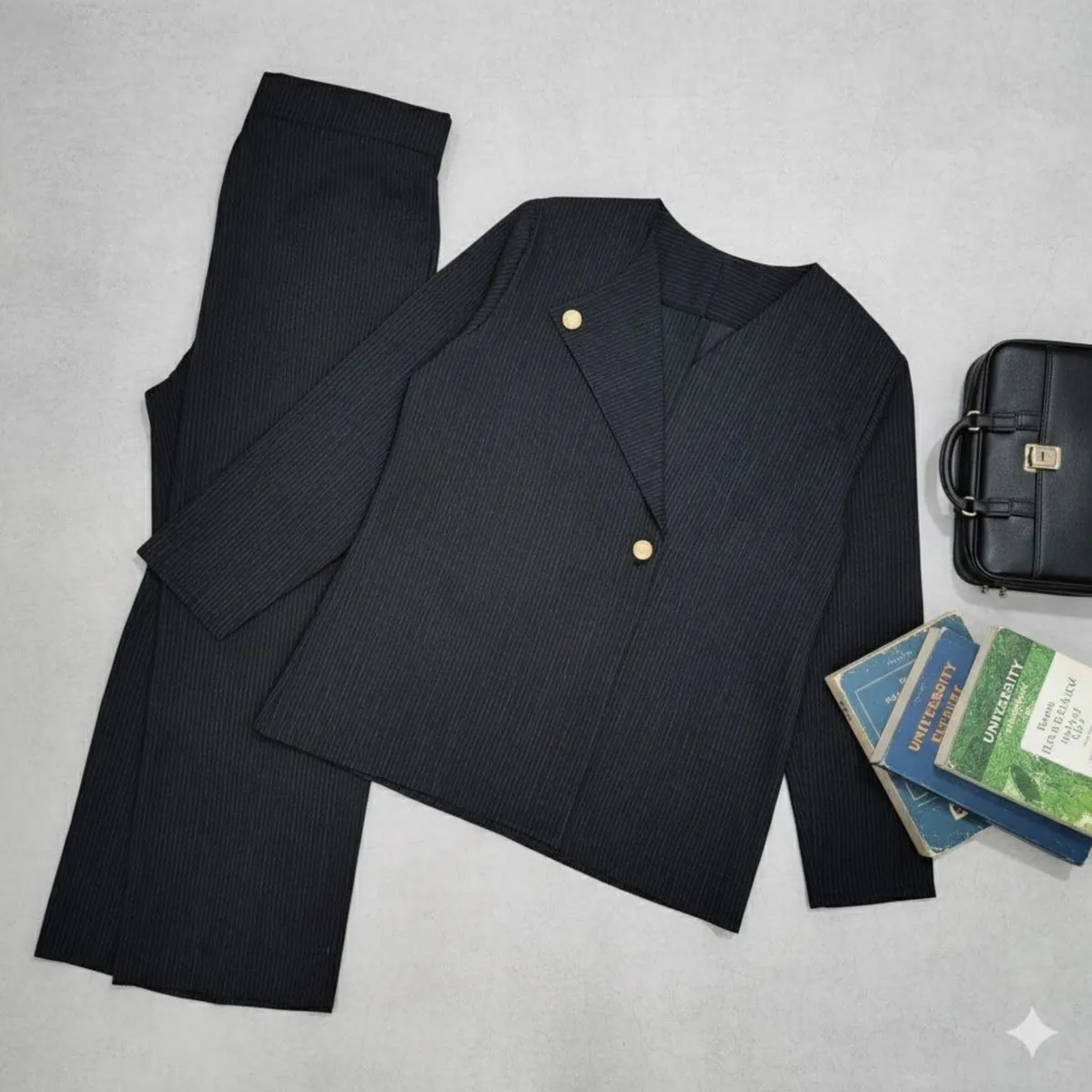 طراحی کت کوتاه، فرم اندام را کشیدهتر نشان میدهد و باعث میشود استایل کار اداری یا جلسات رسمی، هم مرتب و هم خاص به نظر برسد.