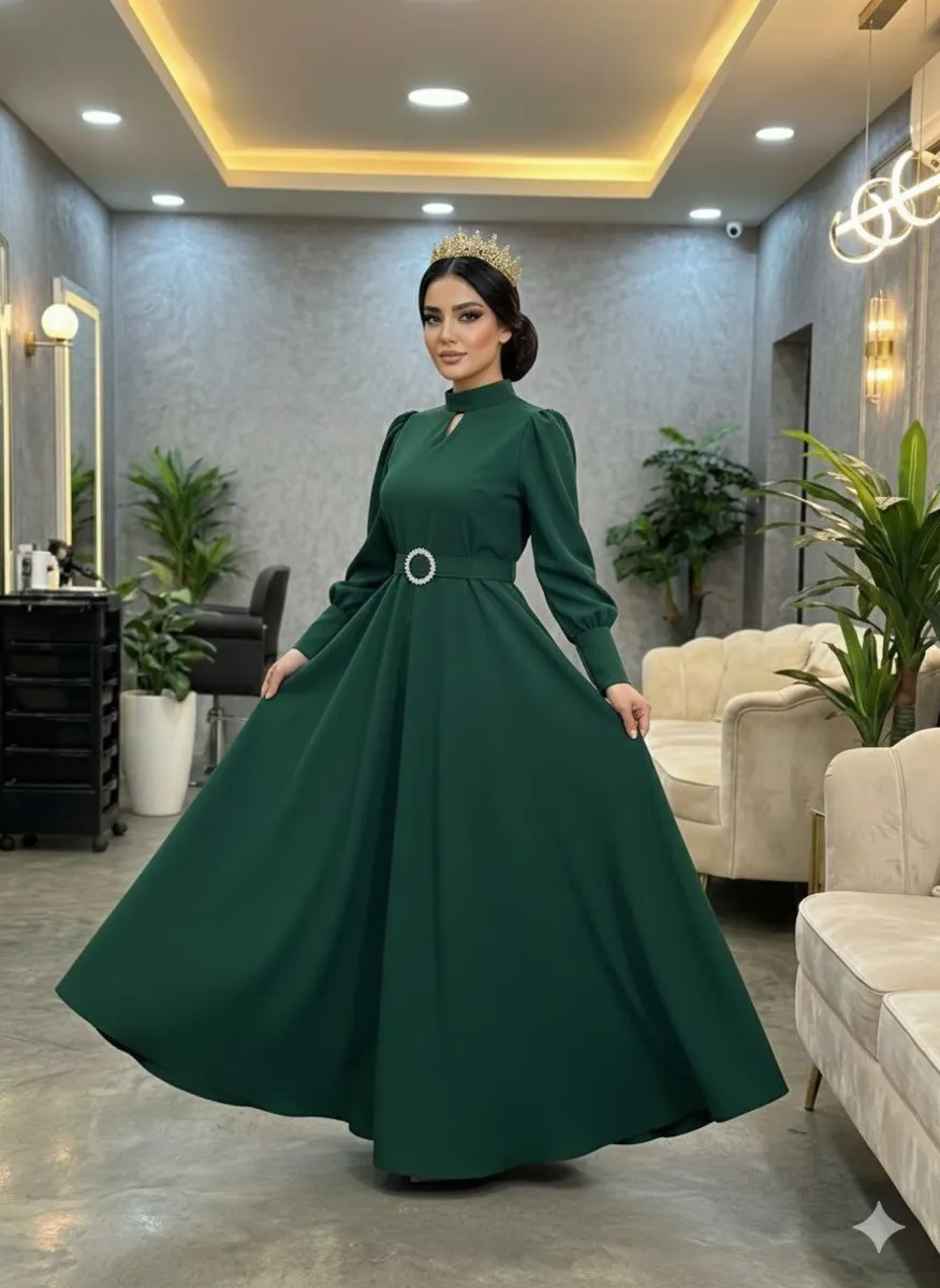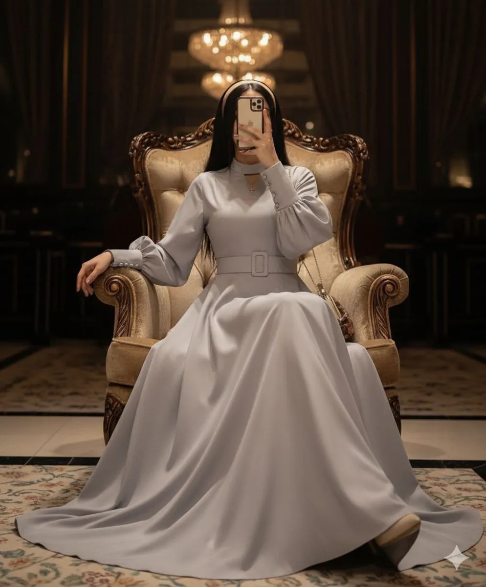پیراهن مجلسی مدل ویکتوریا تلفیقی از طراحی فاخر، استایل پوشیده و ظرافت بینقص است. این لباس مجلسی طوری دوخته شده که هم برای مراسم رسمی و جشنهای ویژه شیک باشد و هم کاملاً متناسب برای استایل محجبه و خانمانه عمل کند.