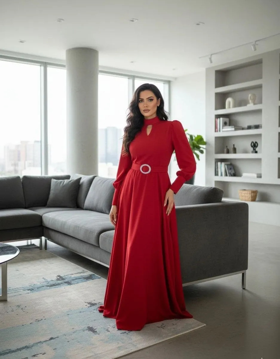 این پیراهن، انتخاب ویژهی خانمهای با استایل پوشیده و سایز بزرگ است که دنبال ترکیبی از وقار، راحتی و درخشش مجلسی میگردند.