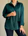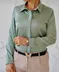 طراحی مینیمال با دکمههای مخفی، جلوهای تمیز و رسمی به شومیز داده و در کنار قوارهدار بودن آن، تنخور آزاد و خوشفرمی ایجاد میکند که برای سایزهای مختلف از 38 تا 52 مناسب است. بخش پشت کمی بلندتر طراحی شده (قد جلو 75 و قد پشت 80) تا ایستایی لباس روی بدن کاملاً طبیعی و متناسب باشد.