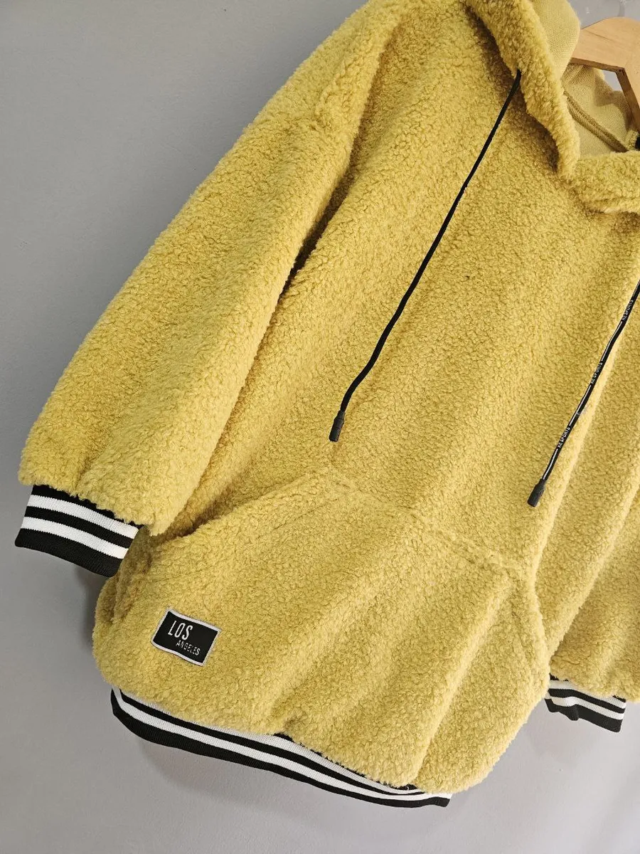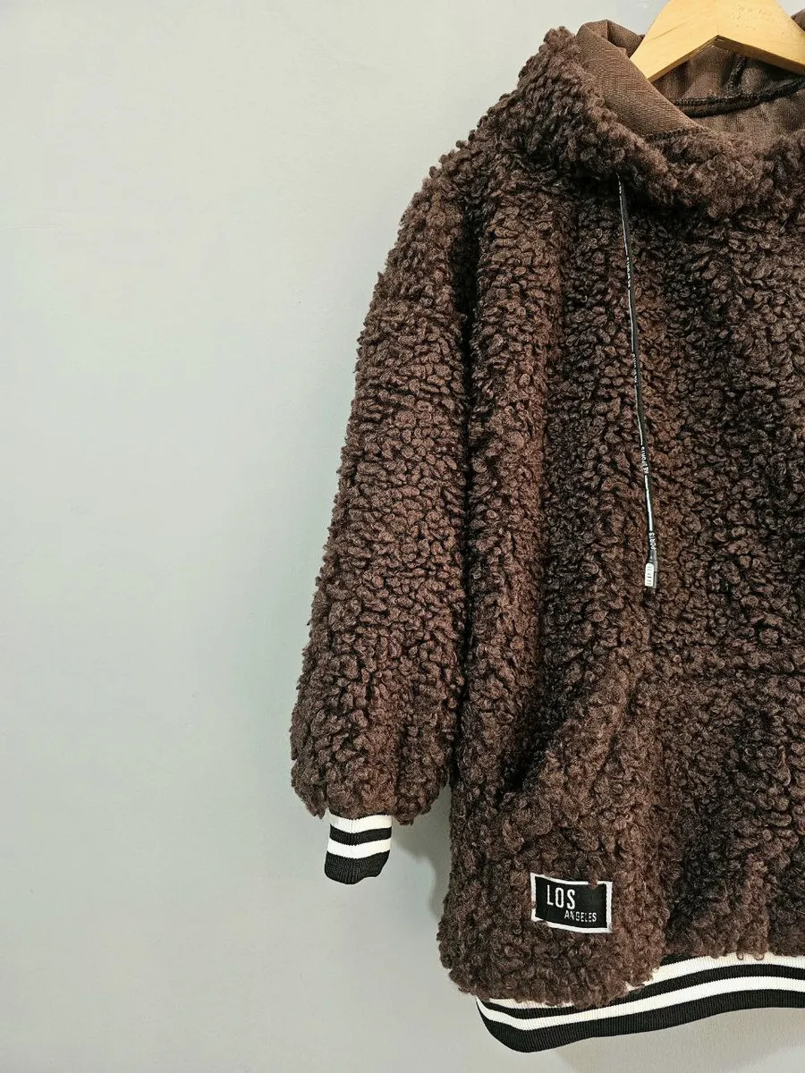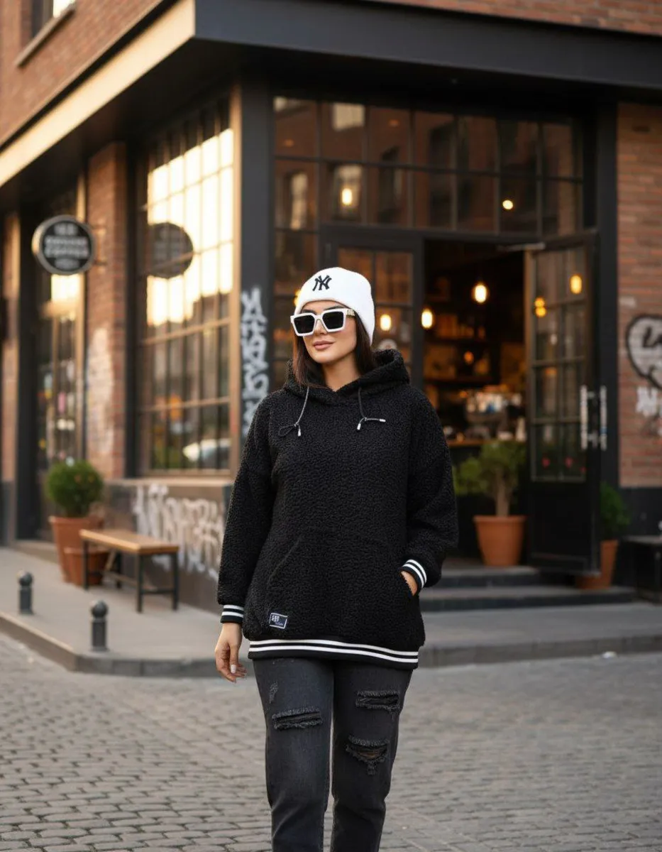 هودی لیزا انتخابی عالی برای روزهای پاییزه؛ چه برای دانشگاه و گردش روزمره، چه برای استایل خانگی باحال و راحت. بافت تدی آن به زیبایی روی بدن مینشیند و حس گرما و لطافت را در هر قدم همراهت نگه میدارد. 🍁✨