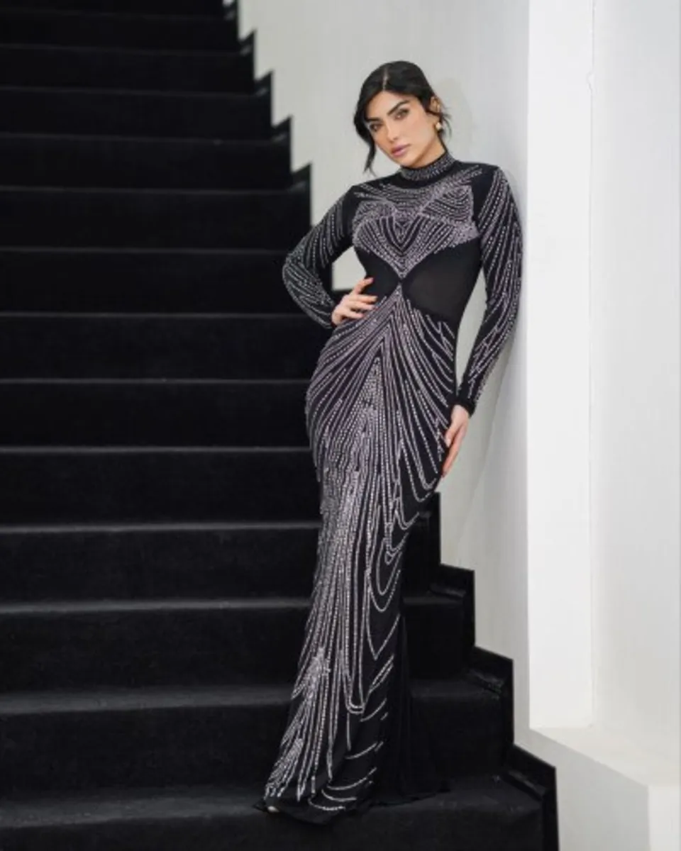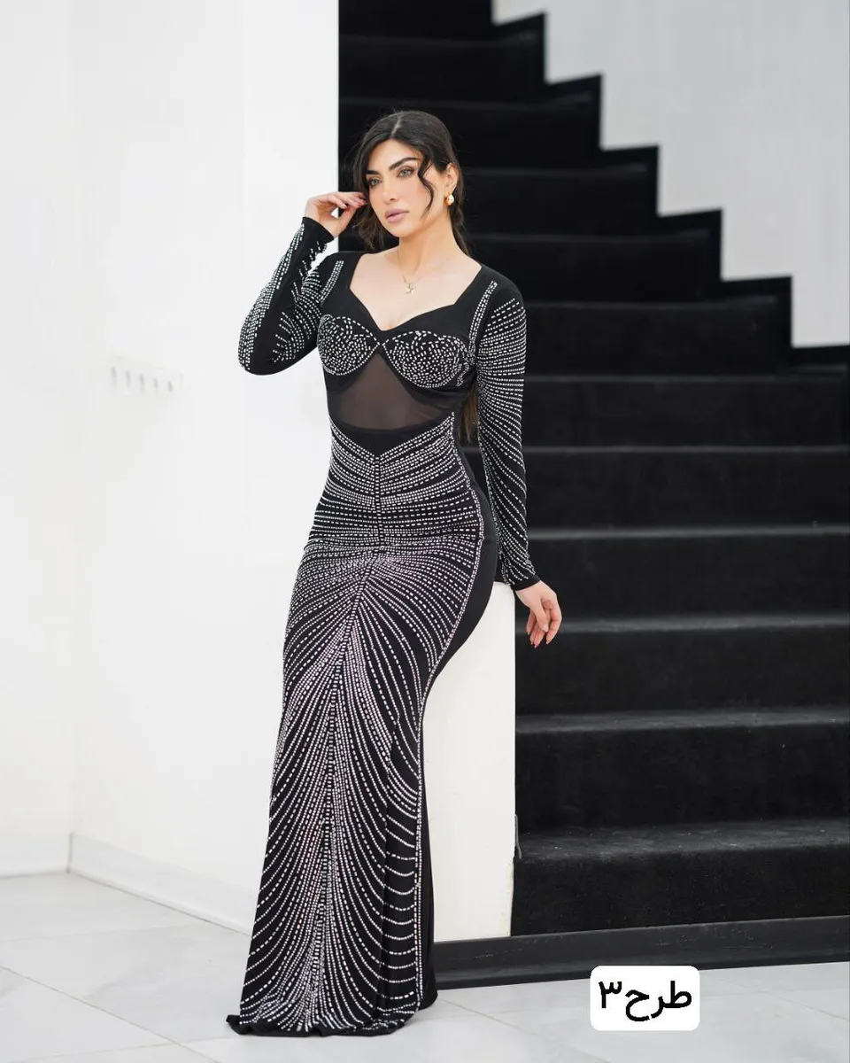 پیراهن مجلسی ماکسی نگینی بغلتور مدل لعیا یکی از خاصترین و چشمنوازترین مدلهای کالکشن جدید مجلسی است؛ طراحی آن تلفیقی از درخشش سنگدوزیهای ظریف و برش تور مجلسی در دو طرف است که جلوهای مجلل و اندامی به استایل شما میبخشد. ✨👗