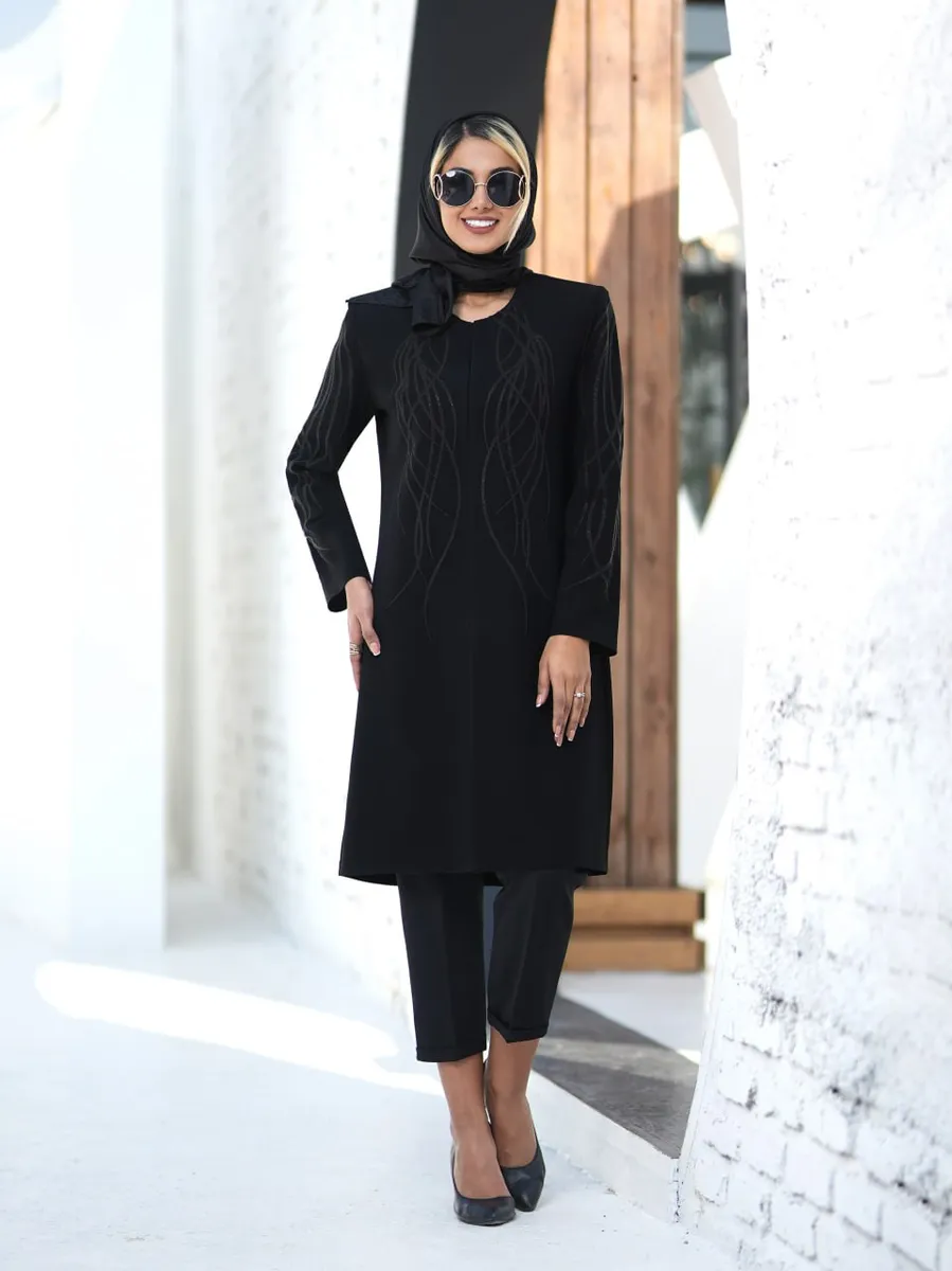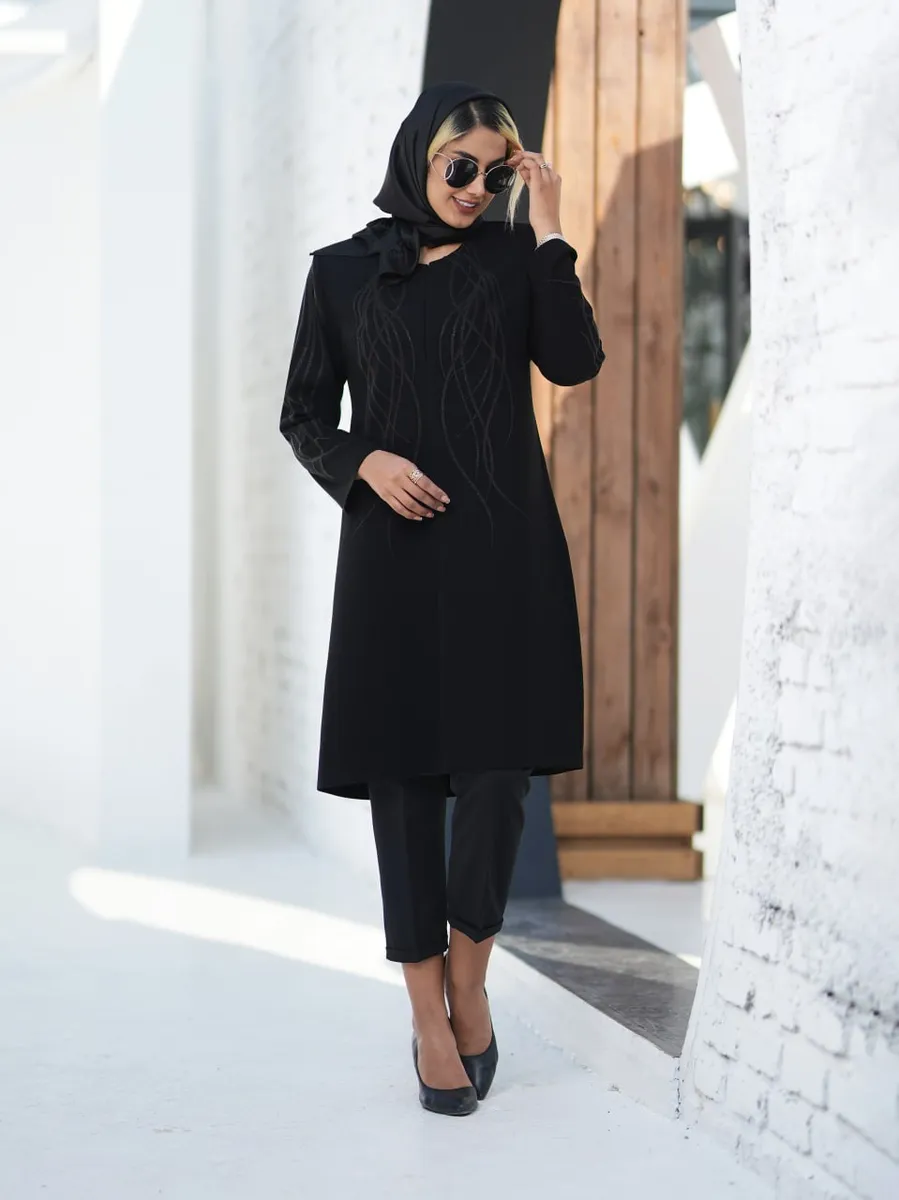 این مانتو یکی از مدلهایی است که برای مراسم رسمی، محیط کاری خاص و مهمانیهای شب شیک مناسب بوده و با شلوار جذب یا دمپا بگ مشکی و کفش پاشنهدار ترکیب فوقالعادهای میسازد.