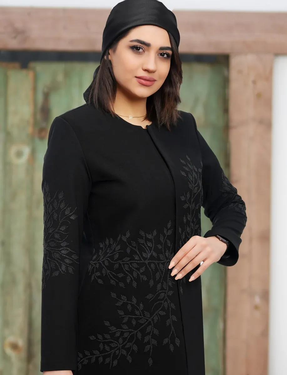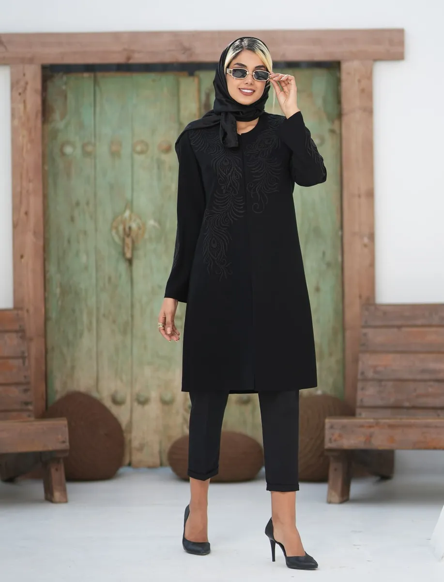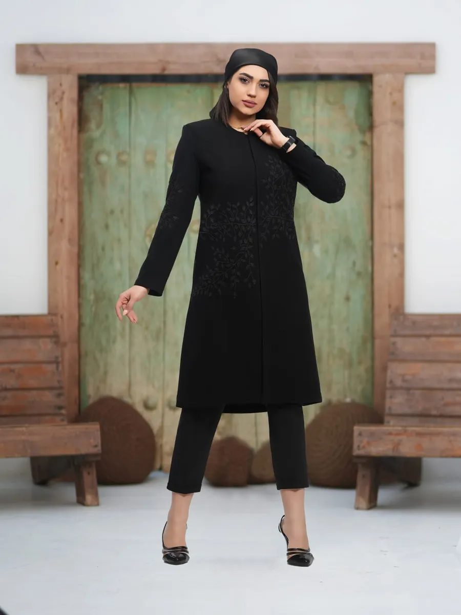 دوختهشده از کرپ باربی وارداتی درجهیک، این مدل ضمن داشتن لطافت و درخشش ملایم، در فرم بدن ایست فوقالعادهای دارد. خرجکار گلدوزی خاویاری در سه طرح متفاوت روی مانتو، جلوهای فاخر و چشمگیر ایجاد کرده که بدون نیاز به اکسسوری اضافه، استایل را کامل میکند.