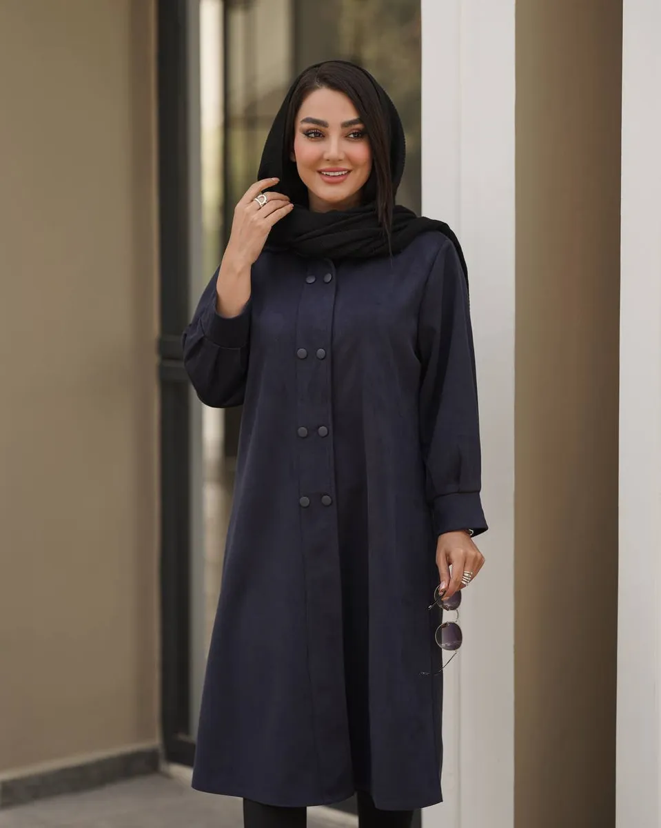 طراحی یقه مردانه دو ردیف دکمهای، فرم پالتو را ساختارمند و مجلسی کرده و به کمک دوخت تمیز و قد بلند (108 سانتیمتر)، بهصورت طبیعی اندام را کشیدهتر نشان میدهد. مدل نگین با رنگ سرمهای خاص و کلاسیک خود، برای موقعیتهای اداری، دانشگاهی و حتی مهمانیهای رسمی انتخابی ایدهآل است.