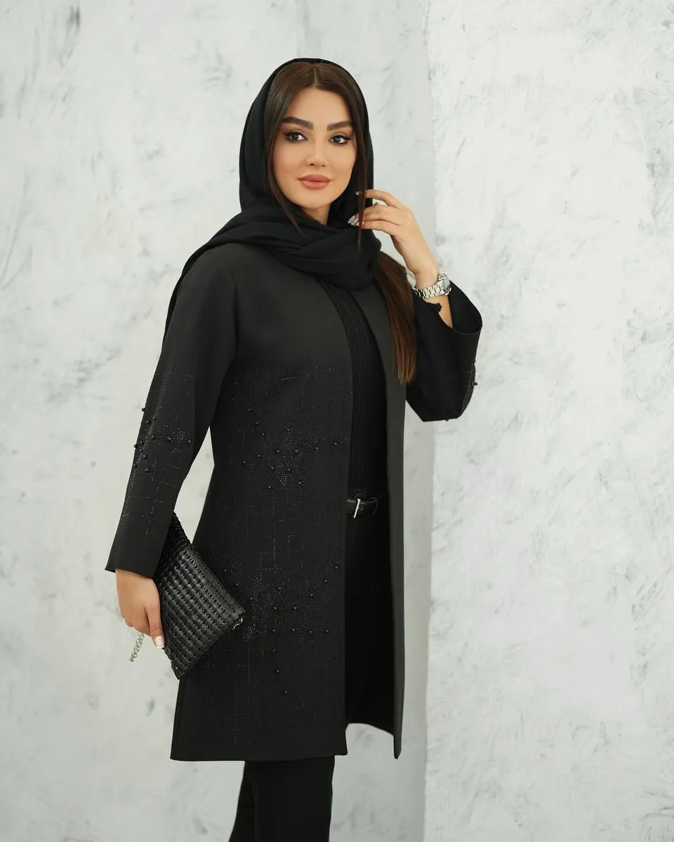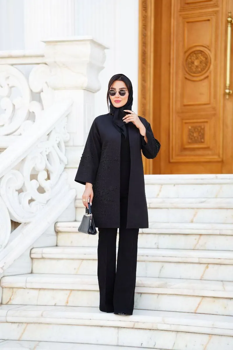 👗 این مانتو مجلسی نگیندار با دوخت حرفهای، پارچه مرغوب و جزئیات ظریف نگین و مروارید، نمایانگر اصالت و درخشش زنانه است — مناسب زنانی که در عین وقار، تمایل به ظاهری چشمگیر و متمایز دارند.