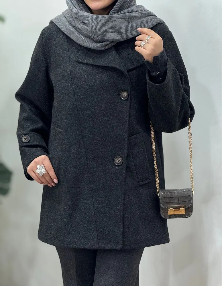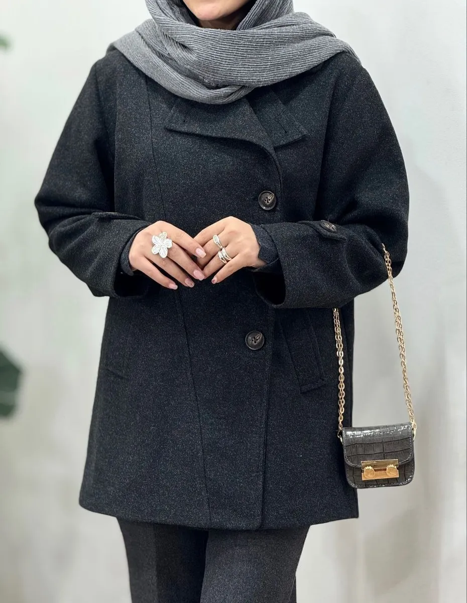 پارچهی فوتر دو رو باعث میشود پالتو از هر زاویه ظاهری منسجم و تمیز داشته باشد؛ بدون نیاز به آستر سنگین، فرمی شیک و فیت حرفهای ایجاد میکند. یقه کلاسیک و برش مزونی در قسمت سرشانه و آستین، جلوهای رسمی و خاص به آن داده است. فرم کوتاه آن با هر نوع شلوار یا بوت قابل ست شدن است و گزینهای ایدهآل برای استایل رسمی، روزانه یا دانشجویی محسوب میشود.