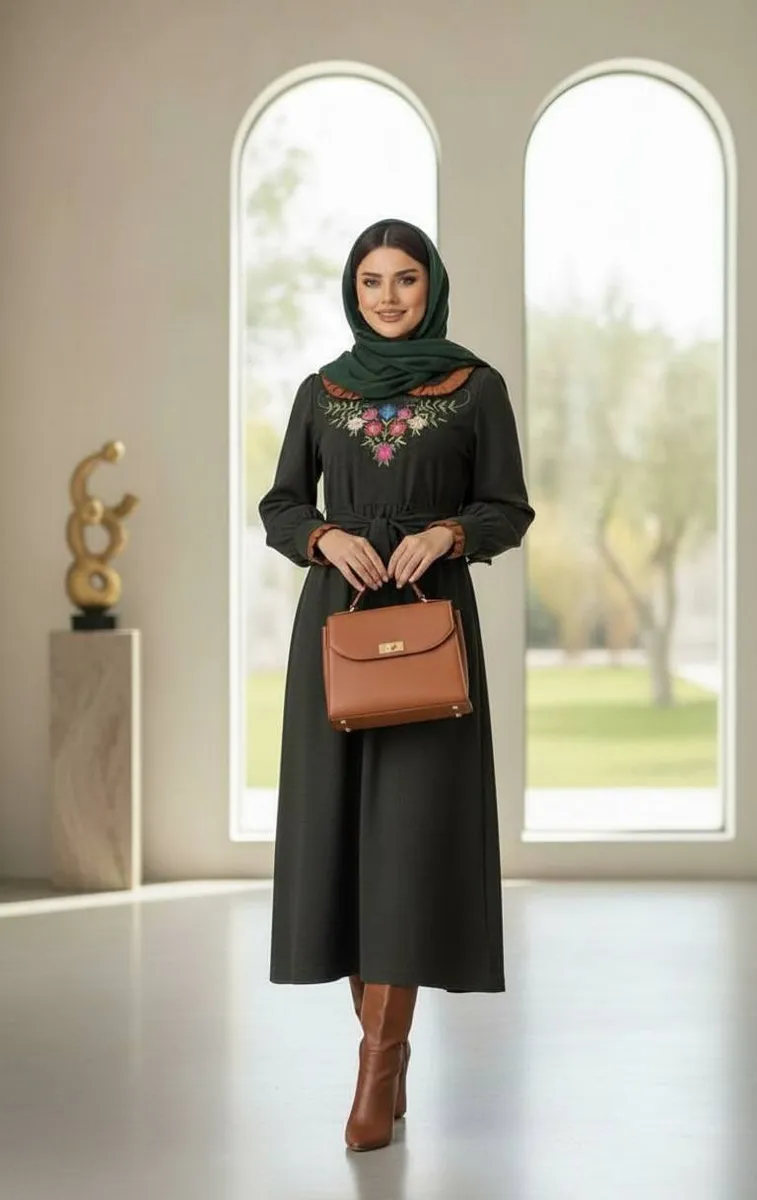 قسمت جلوی مانتو تماما گلدوزی شده با بهترین متریال و دستگاه های روز