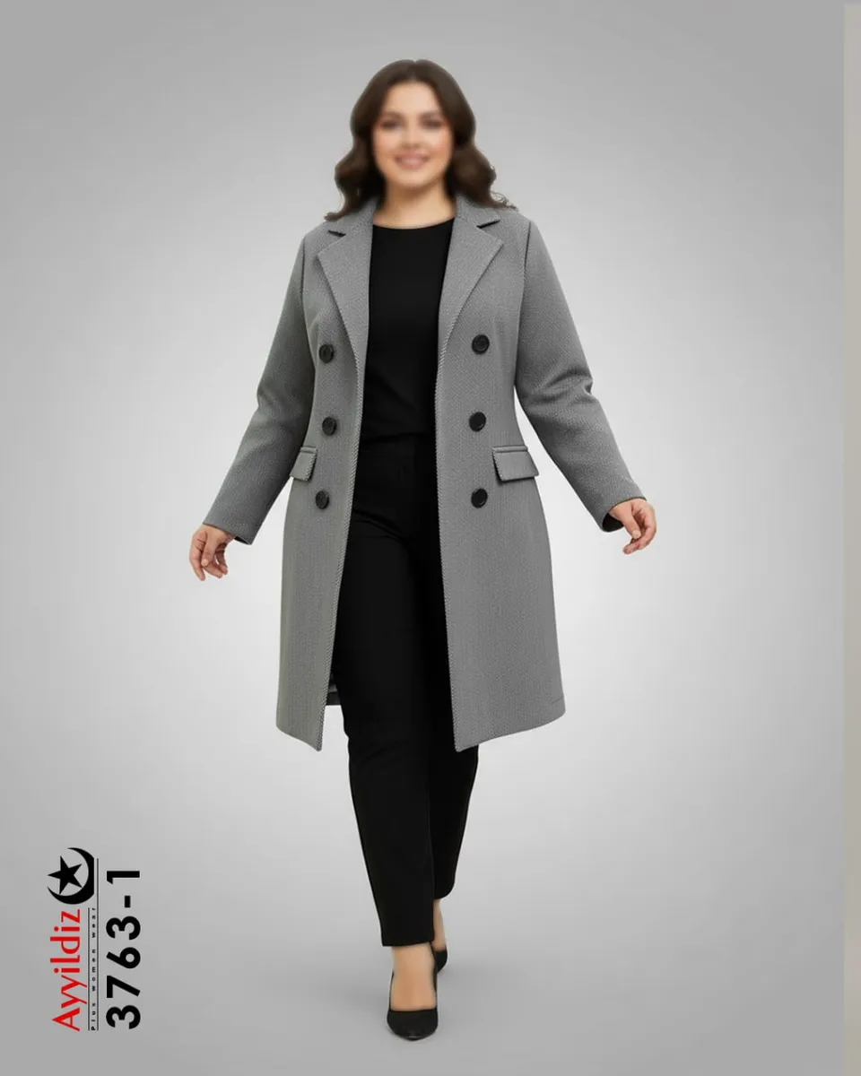پالتو جناقی مدل 3763 از کالکشن پاییزی ویژهی سایز بزرگ طراحی شده و ترکیبی از استایل کلاسیک و فرم مدرن کتی را به نمایش میگذارد. پارچهی جناغی ضخیم و باکیفیت به آن ایست و دوام فوقالعادهای داده؛ درحالیکه بافت نرم و لطیفش، راحتی بینقصی را فراهم میکند.