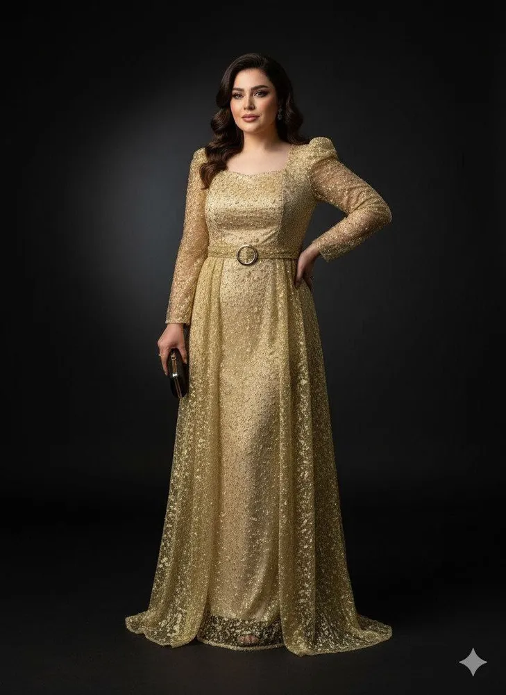 رنگ طلایی درخشان، حس اعتمادبهنفس و جذابیت را در هر فریم از استایل به نمایش میگذارد؛ در حالی که فرم ماکسی و سایزبندی گسترده از 38 تا 50 باعث شده این مدل برای همه بانوان از سایز معمول تا سایز بزرگ مناسب باشد.