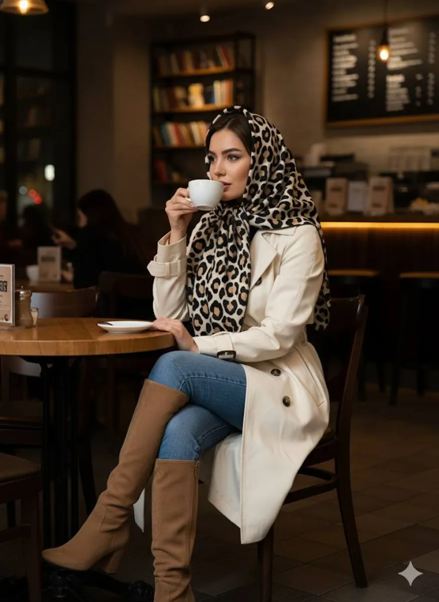 🍁روسری پاییزه پلنگی روبرتو کاوالی