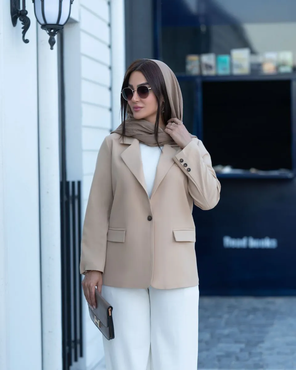 فرم کوتاه و الگوی کلاسیک آن، برای استایلهای اداری، نیمهمجلسی یا روزمرهی شیک کاملاً مناسب است؛ چه روی شومیز و شلوار رسمی پوشیده شود، چه همراه با تیشرت و شلوار جین برای استایلی مدرن و شهری.