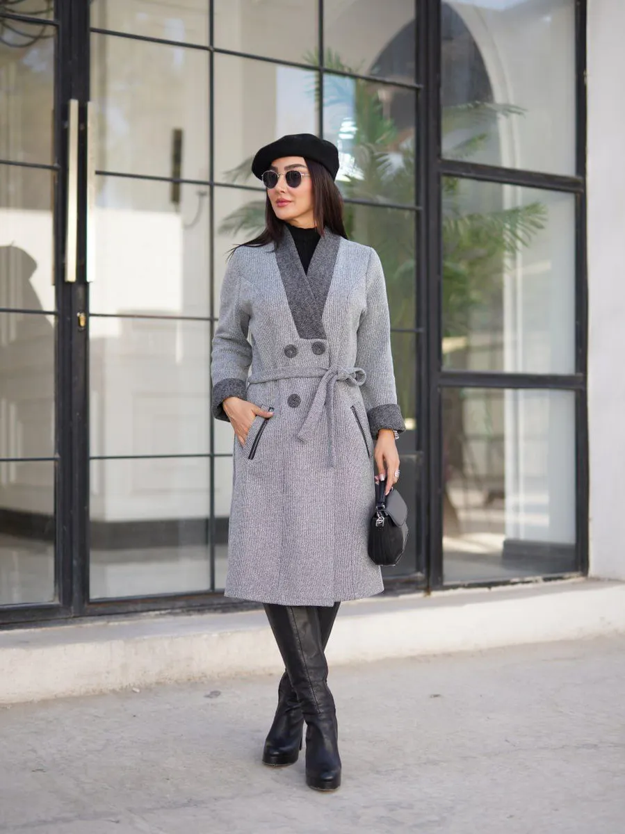 مدل اگرین از مجموعه پاییز و زمستان 1404، یکی از خاصترین طراحیهای امسال است که سبک کلاسیک پالتو فوتر را با لطافت بافت آکرولیک ترکیب کرده است. جنس بدنه از فوتر کوبیدهی درجهیک بوده و در قسمت یقه و بخشهای جانبی از بافت آکرولیک ترکیبی استفاده شده تا علاوه بر گرما، جلوهای خاص و متفاوت ایجاد شود.