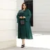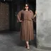 بالاتنهی پلیسهدار ظریف جلوهای کلاسیک و چشمگیر به لباس میبخشد و در ترکیب با پارچهی حریر، فرم اندام را متعادلتر و کشیدهتر نشان میدهد. دوخت و الگوی دقیق آن باعث شده که قسمت دامن آزاد و راحت روی بدن بایستد، بدون اینکه در ناحیهی شکم یا باسن کشیدگی ایجاد کند.