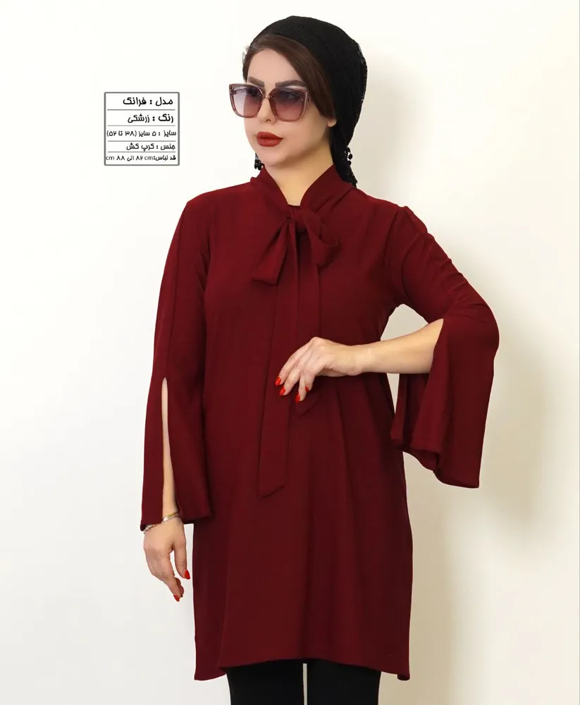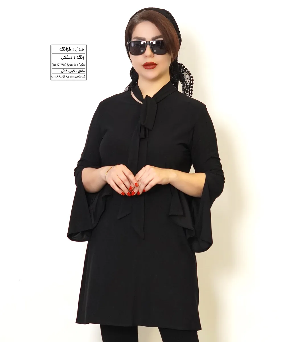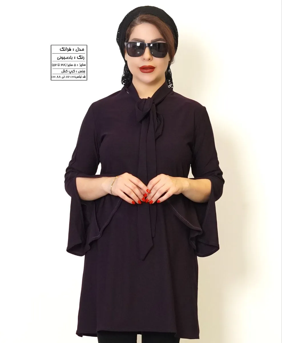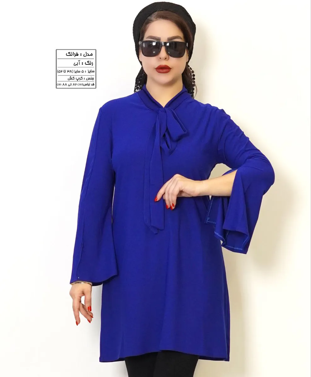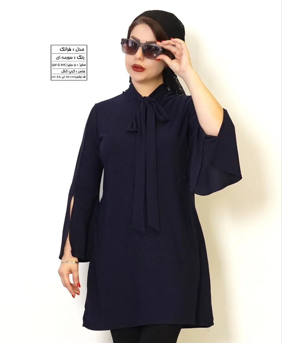 مدل فرانک یکی از محبوبترین تونیکهای کشی و خوشفرم کالکشن پاییزه است که با طراحی پاپیونی و برش عروسکی، استایلی دخترانه، لطیف و درعینحال راحت ایجاد میکند. این تونیک از پارچه کرپ کش باکیفیت دوخته شده که خاصیت کشش و انعطاف بالا دارد؛ بنابراین کاملاً روی بدن مینشیند بدون اینکه تنگ یا آزاردهنده باشد.