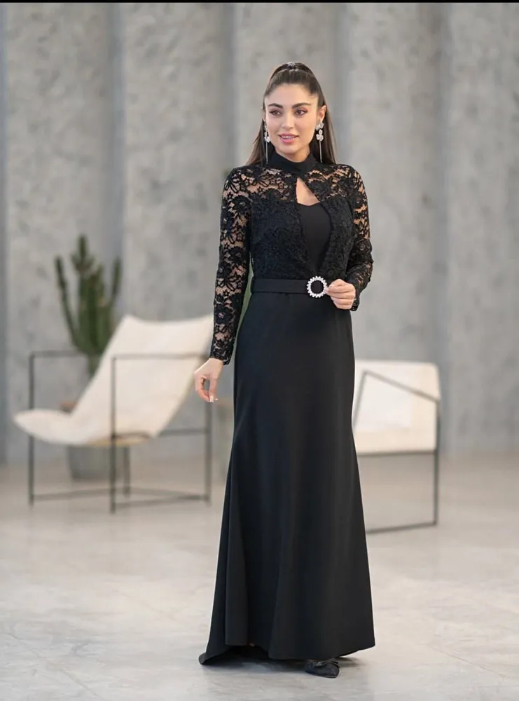 ترکیب رنگ مشکی، قدرت و ابدیت: رنگ مشکی عمیق این لباس، علاوه بر اینکه اندام شما را باریکتر و خوشفرمتر نشان میدهد، بهترین پسزمینه برای جلوهگری دانتل مخمل است. این رنگ، نماد قدرت، ظرافت و شیکپوشی است و “صدف” را به گزینهای عالی برای هر مراسم رسمی و مهمانی شبانه تبدیل میکند.